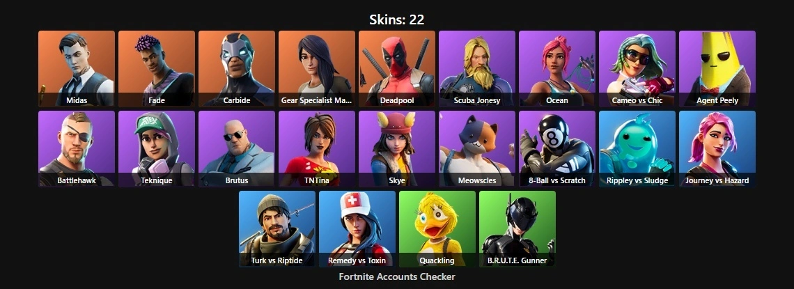 PC/PSN 22 Skins⚡ | Midas | Deadpool | Fade | Carbide | Gear Specialist Maya | Scuba Jonesy | Ocean | Cameo vs Chic | Agent Peely | Battlehawk | Teknique