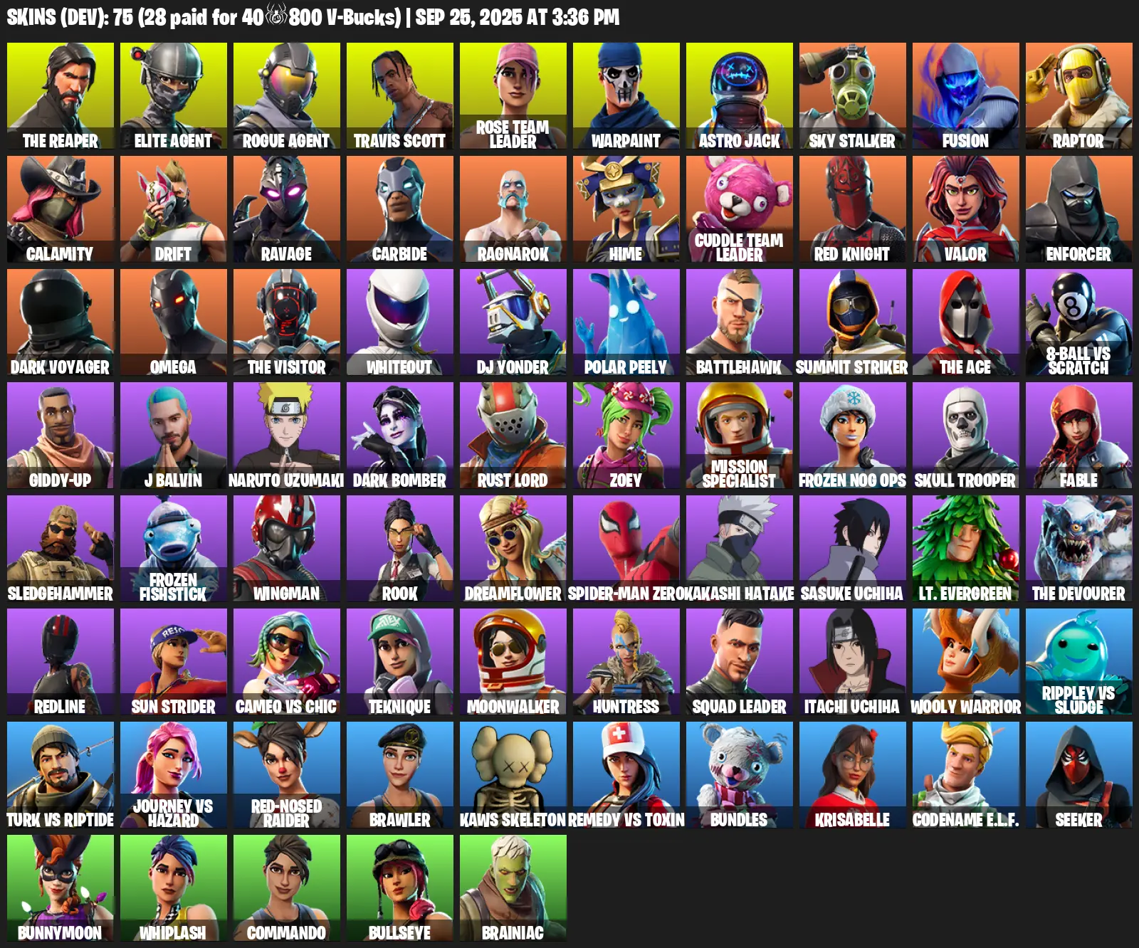 [PC/PSN] 75 Skins | The Reaper | Elite Agent | Rogue Agent | Travis Scott | Rose Team Leader | Warpaint | Astro Jack | Sky Stalker | Fusion | Raptor | Calamity | Drift | Ravage | Carbide | Ragnarok | Hime | Cuddle Team Leader | Red Knight | Valor