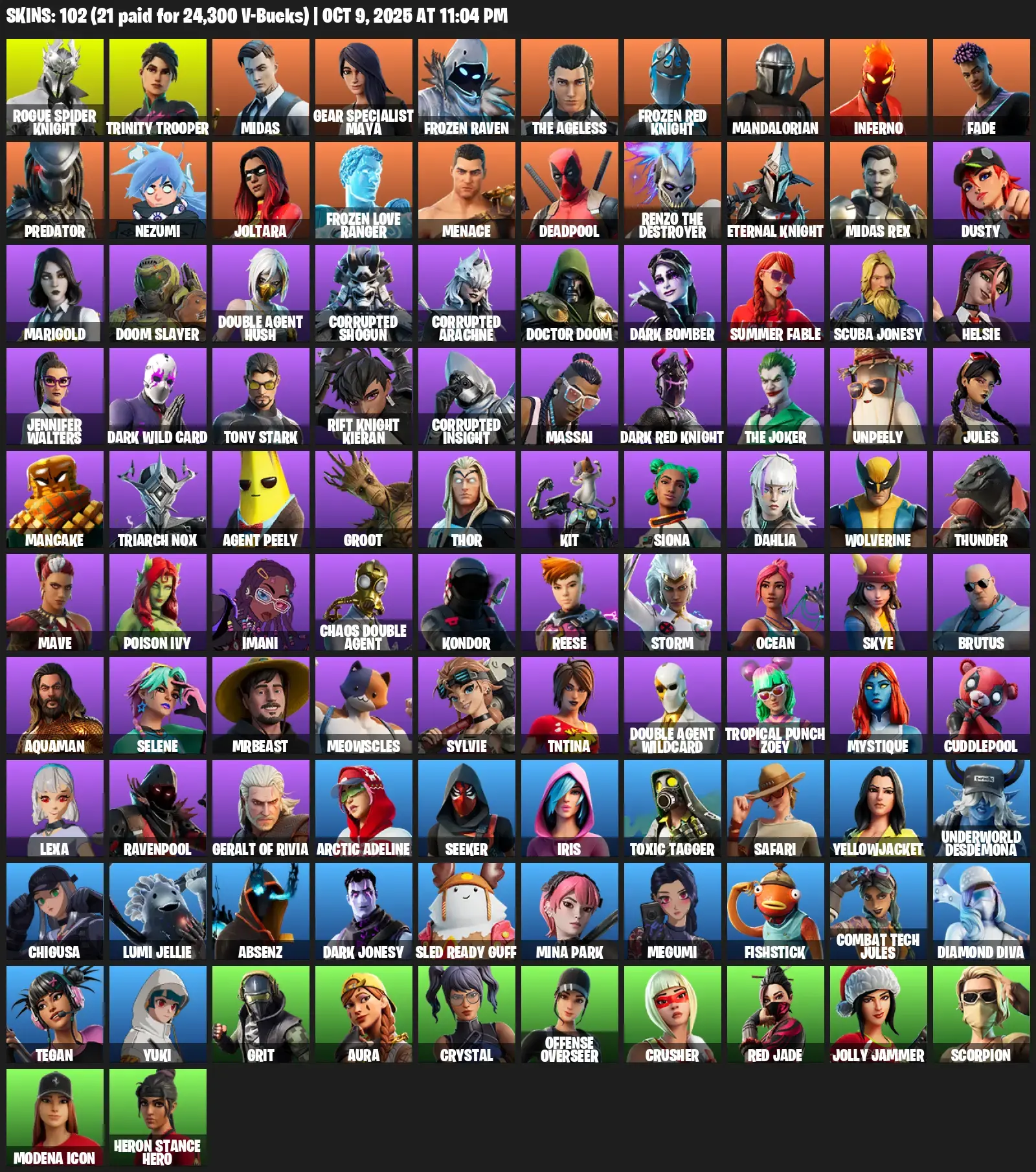 [PC/PSN] | 102 skins | Leviathan Axe | Rogue Spider Knight | Trinity Trooper | Midas | Gear Specialist Maya | Frozen Raven | #IIM2352 | #MBFN