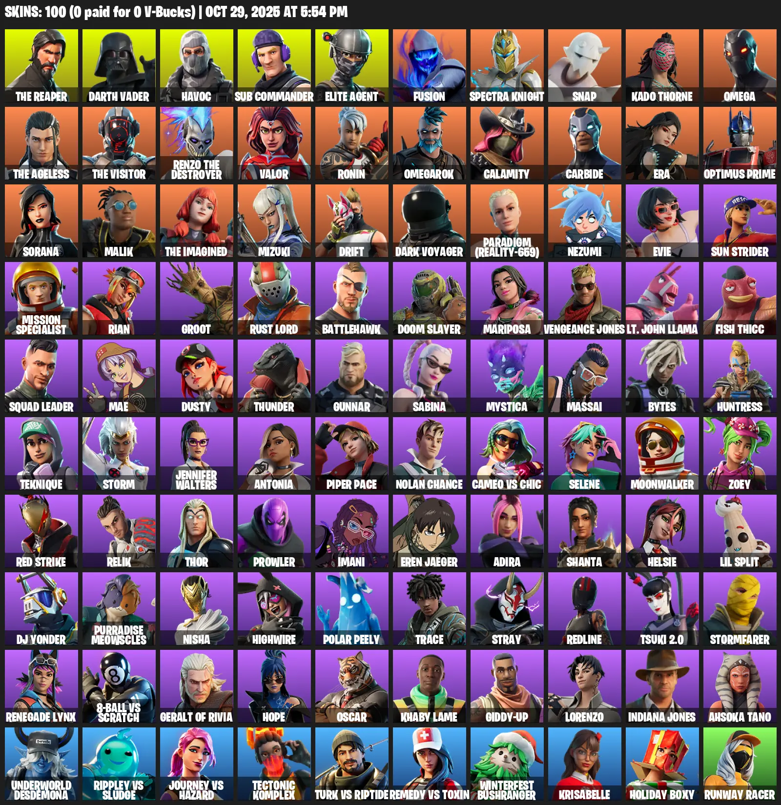 [PC/PSN/XBOX] | 100 skins | 750 V-bucks | Take The L | The Reaper | Elite Agent | Omega | Darth Vader | Havoc | Sub Commander | #HNO0425 | #MBFN