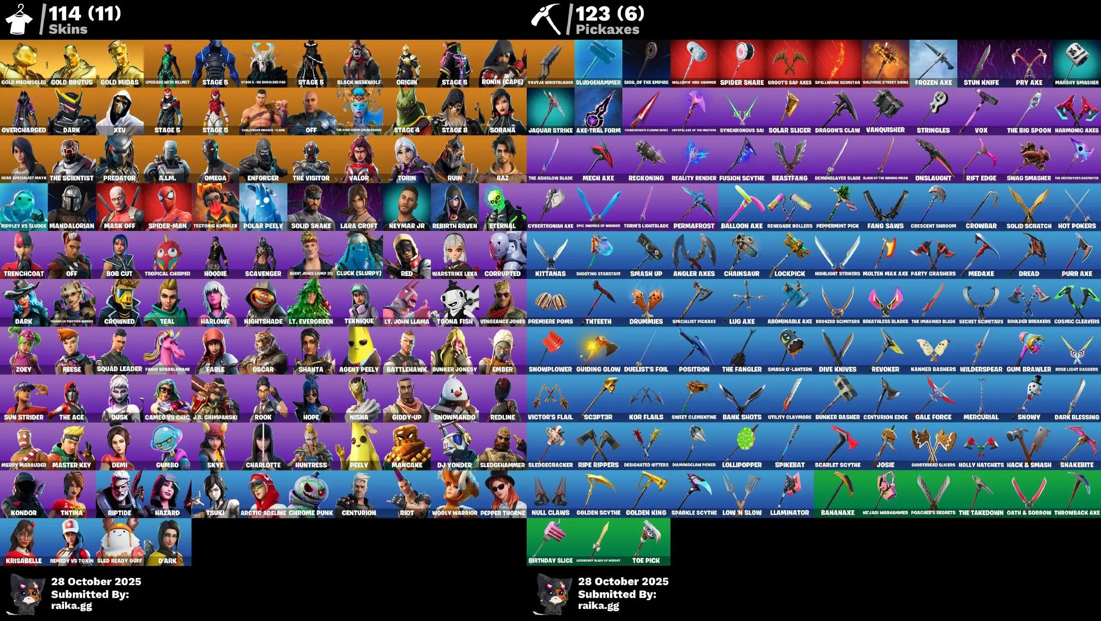 [PC/PSN/XBOX] 114 skins | Lara Croft | Peely | Omega | Deadpool | Mandalorian | Catalyst | Drift | Rust Bucket | Gold Midas Ag10