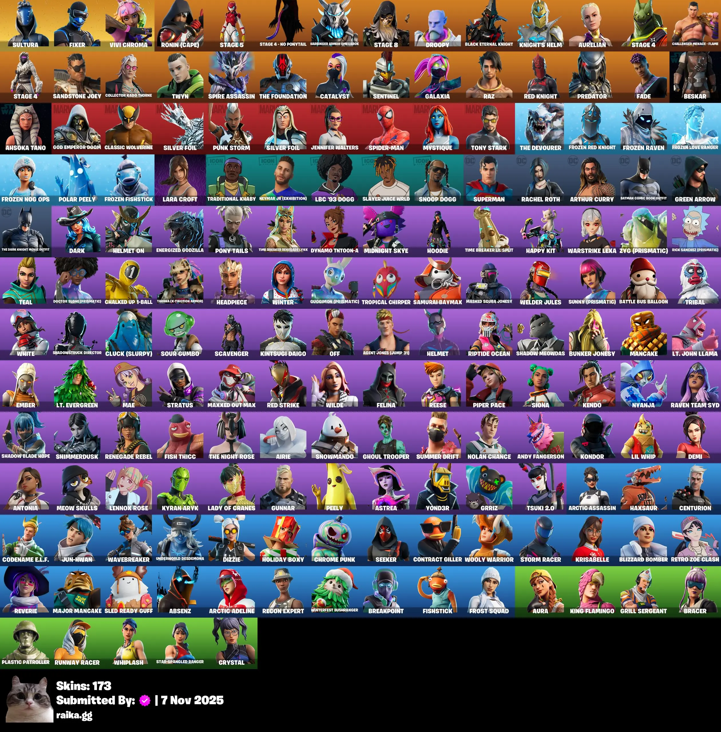 [PC/PSN/XBOX] 173 skins | Sultura | Fixer | Vivi Chroma | Ronin (Cape) | STAGE 5 | Stage 4 ⸱ NO PONYTAIL | Harbinger Armor Omegarok | STAGE 8 | Droopy