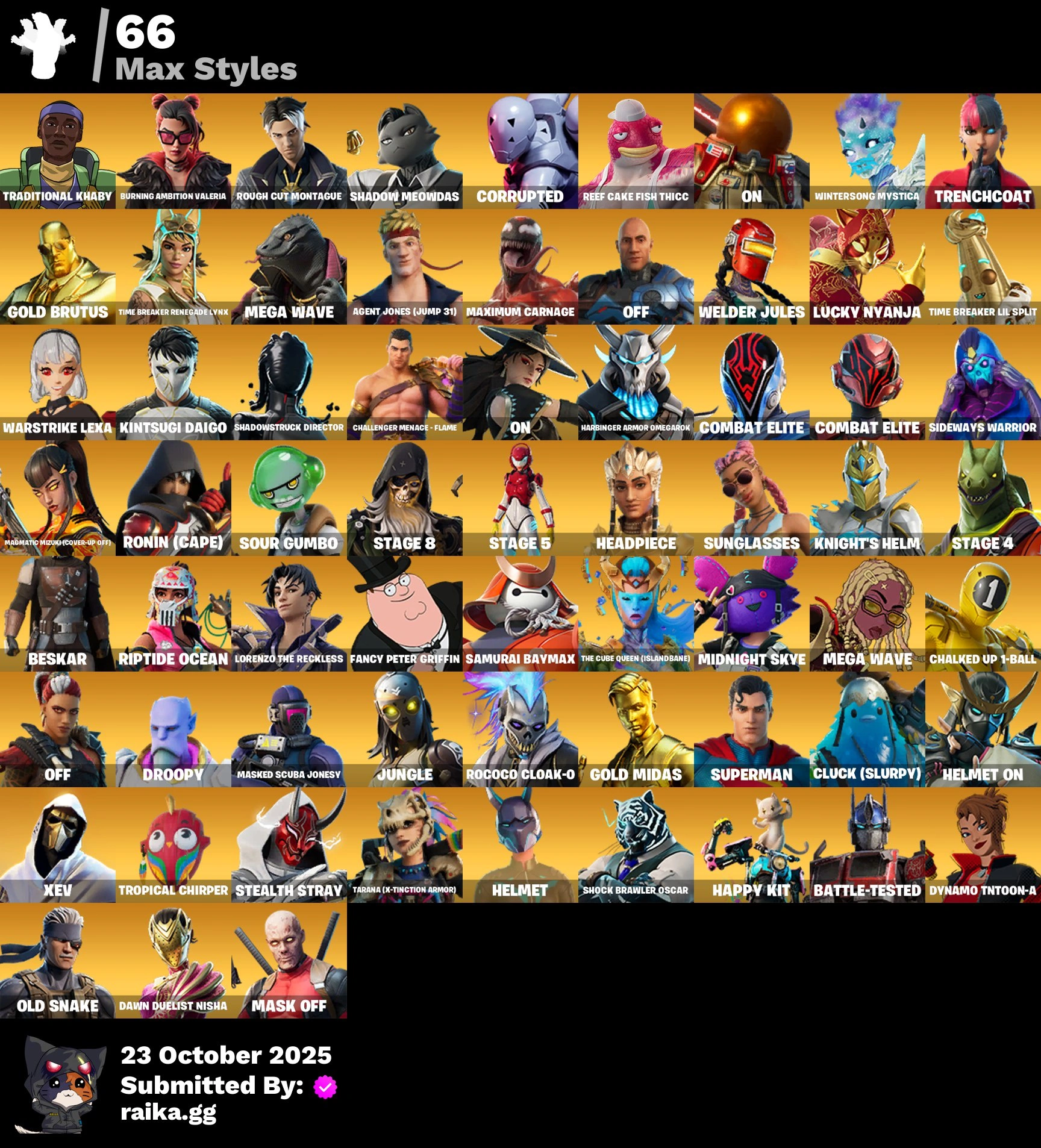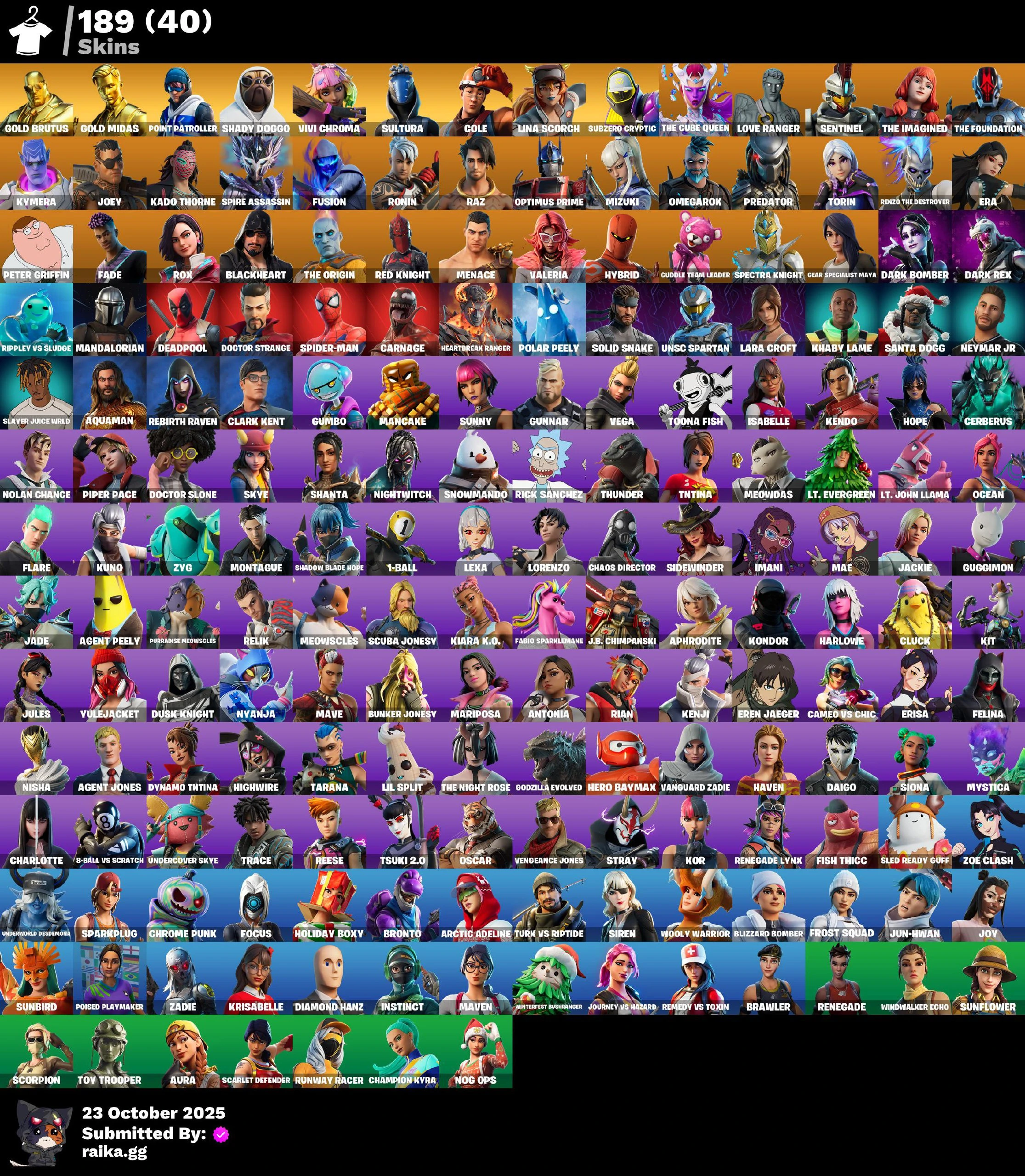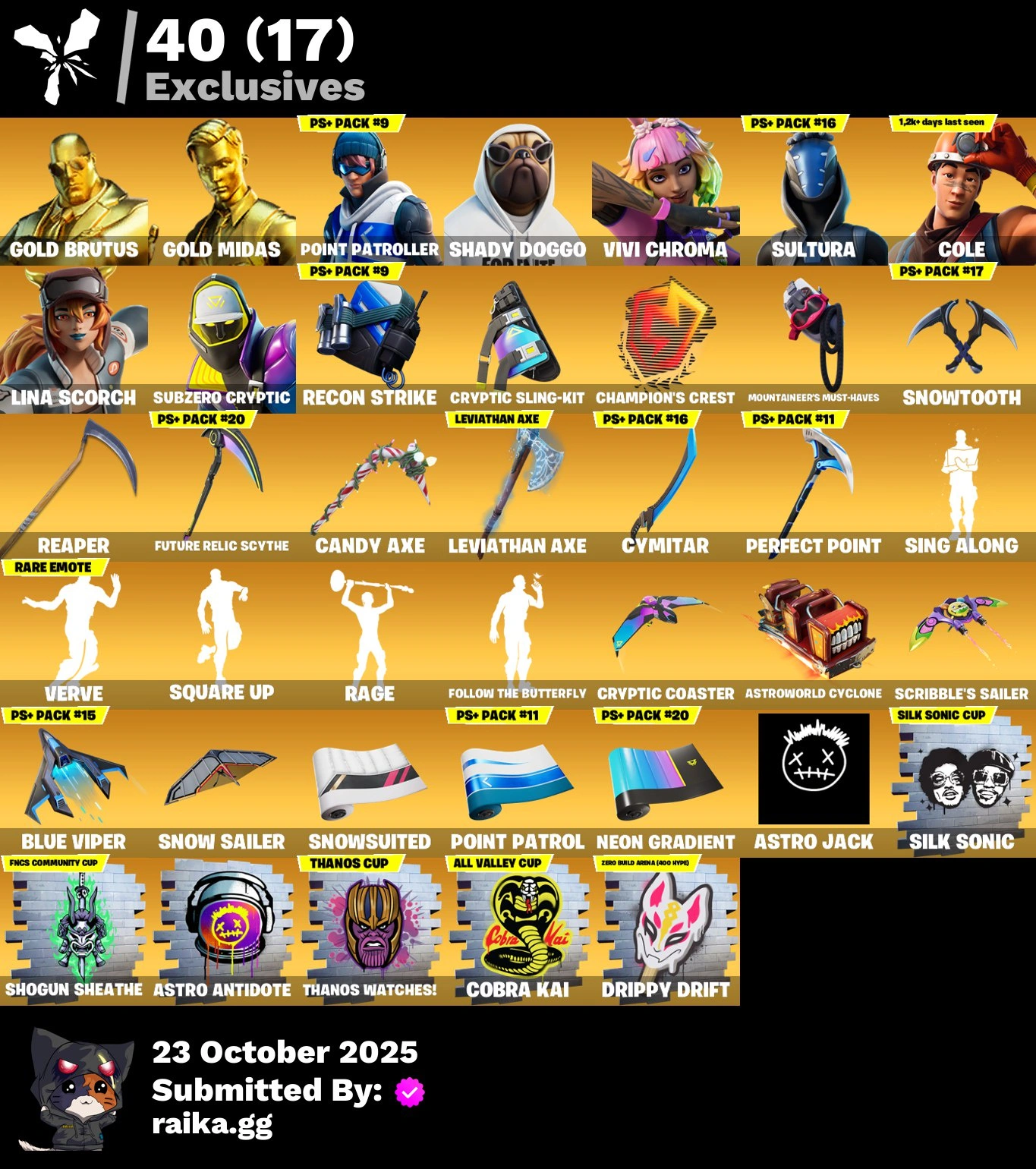 [PC/PSN/XBOX] 189 skins | Leviathan Axe | Gold Brutus | Gold Midas | Point Patroller | Shady Doggo | Vivi Chroma | Sultura | Cole | Lina Scorch | Subzero Cryptic | 250 VB