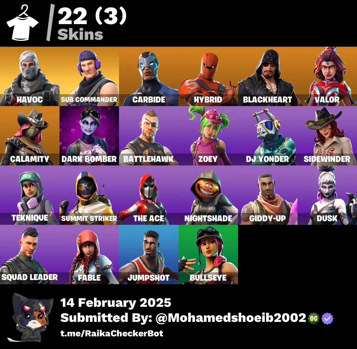 [PC/PSN/XBOX] 22 skins | Havoc | Sub Commander | Carbide | Hybrid | Blackheart | Valor | Calamity | Dark Bomber | Battlehawk | Zoey | DJ Yonder | Sidewinder | 250 VB