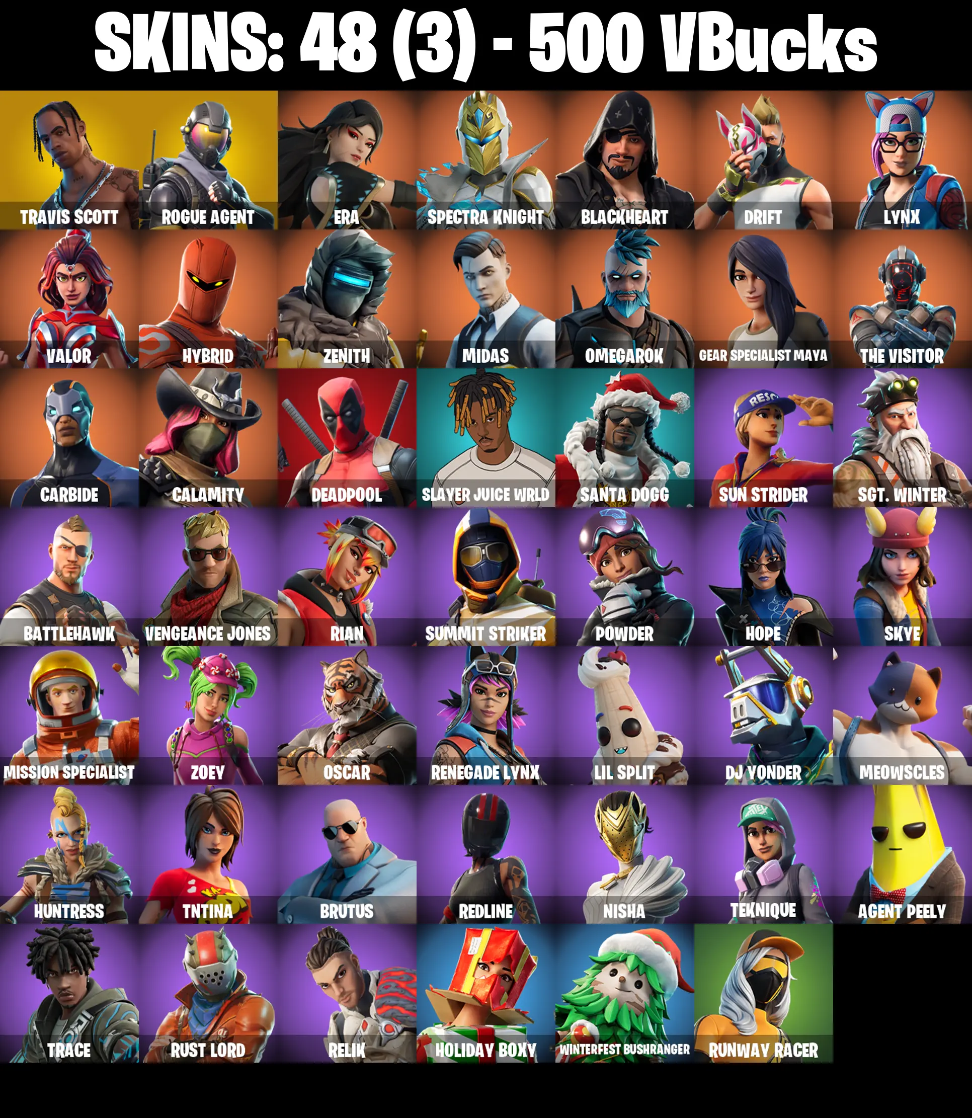 PC/PSN/XBOX ♨️48 skins ✨ Travis Scott ✨ Deadpool ✨ Take The L ✨ Orange Justice ✨ Rogue Agent ✨ Drift ✨ Carbide ✨ Midas ✨ Lynx ✨ Rust Lord ✨ #B867