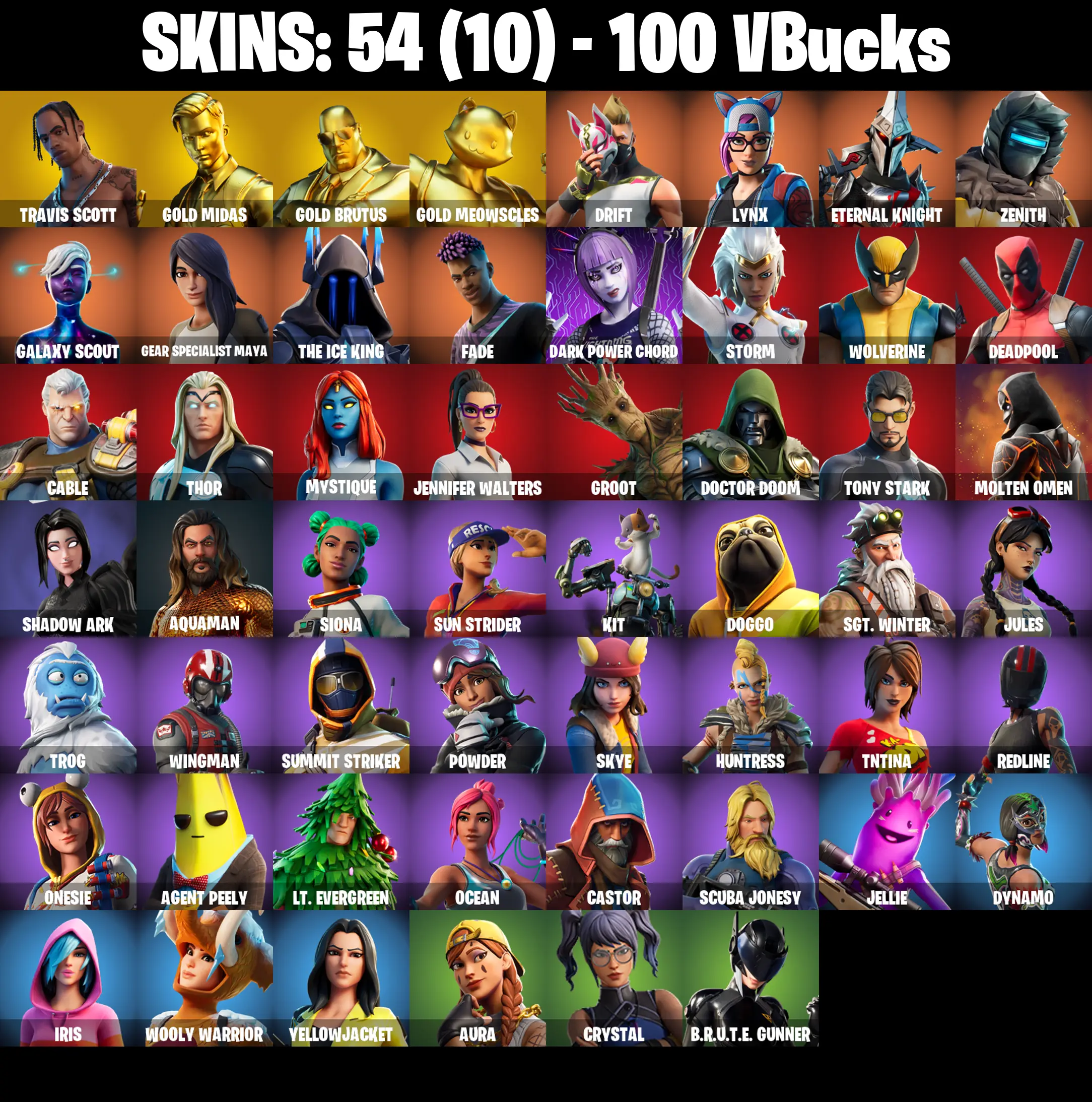 PC/PSN/XBOX ♨️54 skins ✨ Travis Scott ✨ Deadpool ✨ Gold Midas ✨ Gold Brutus ✨ Gold Meowscles ✨ Drift ✨ Rage ✨ The Ice King ✨ Eternal Knight ✨ #B877