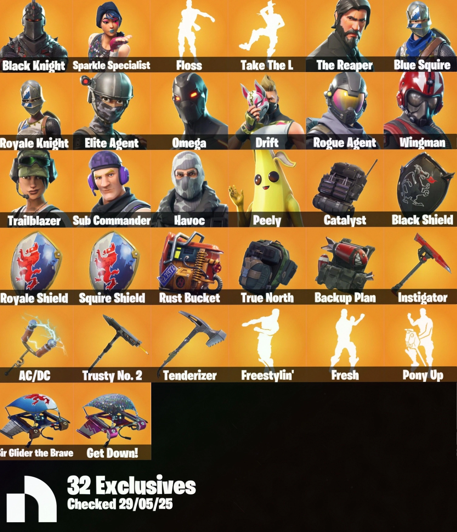 [PC/PSN/XBOX] 58 Skins+Black Knight+Sparkle Specialist+Floss+Take The L+The Reaper+Blue Squire+Royale Knight+150 VB #CODE-169392