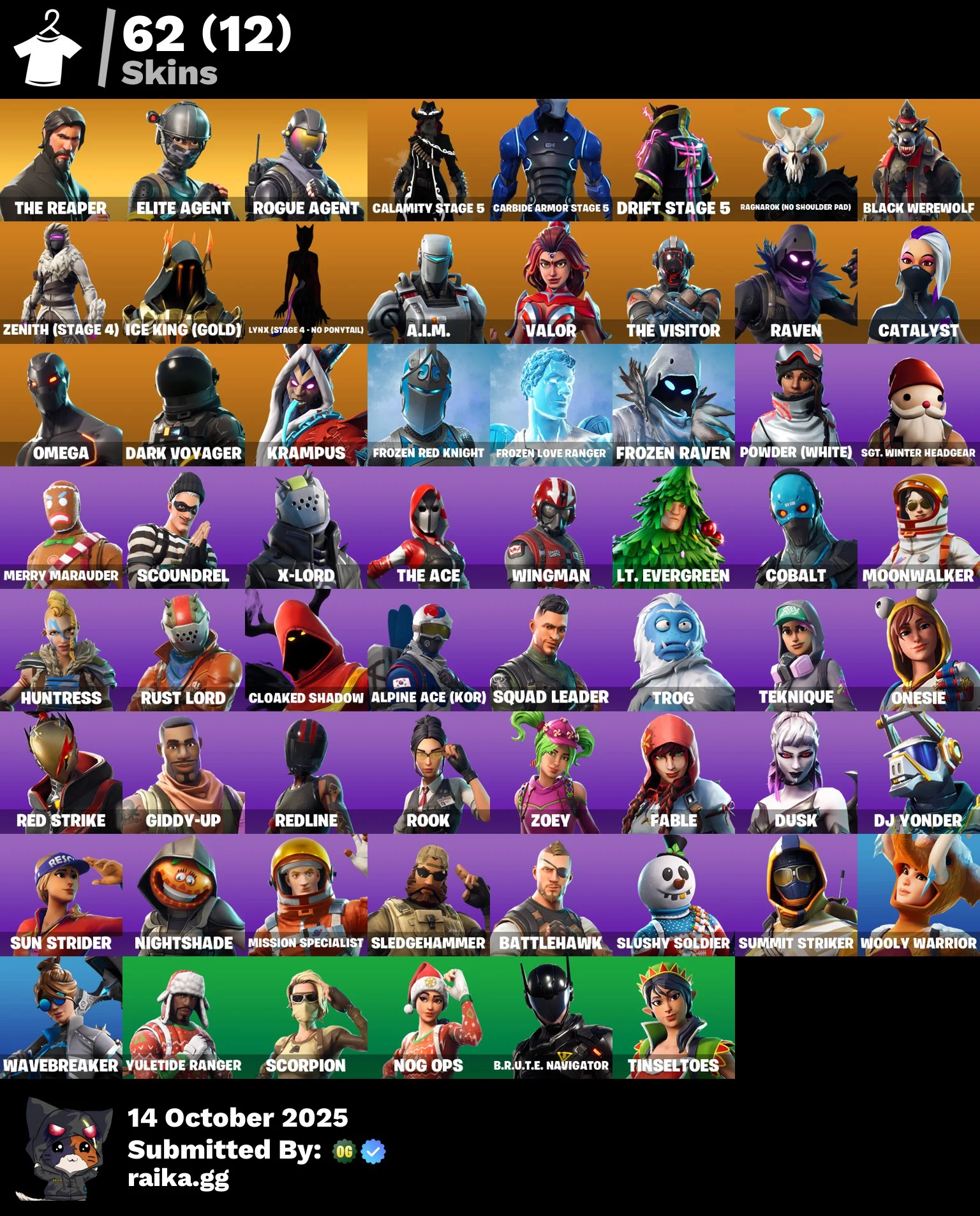 [PC/PSN/XBOX] 62 skins | The Reaper | Take The L | Elite Agent | Candy Axe | Raven | Omega | Catalyst | Rust Bucket | -11500 VB lai679