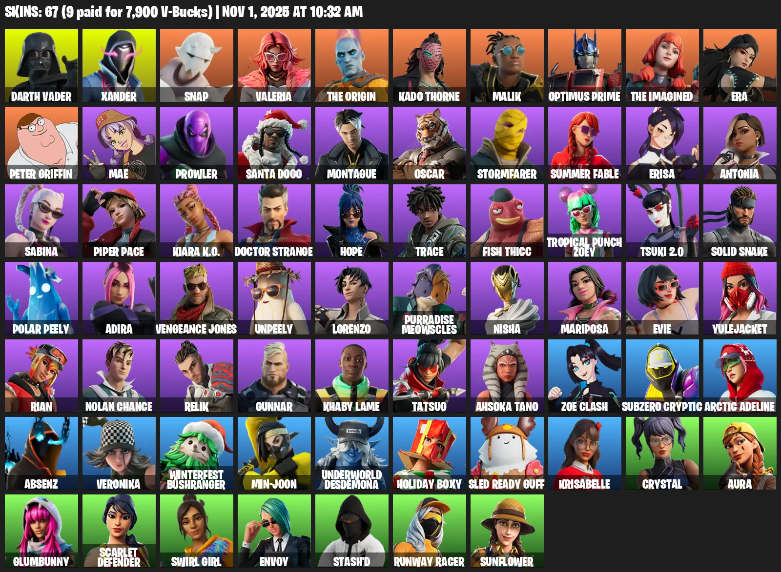 🍨 [PC/PSN/XBOX] 🌟 67 skins | Darth Vader , Xander , Snap , Valeria , The Origin , Kado Thorne , Malik , Optimus Prime , The Imagined | 💙 450 VBUCKS | ✉️ Changeable Email Now