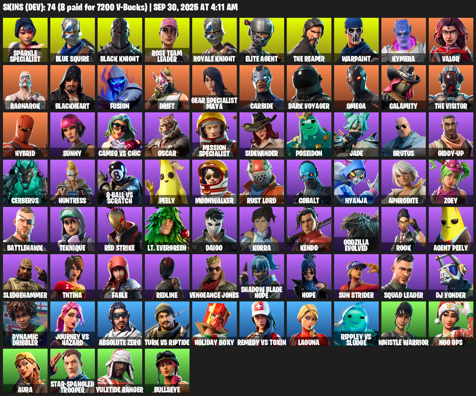 [PC/PSN/XBOX] | 74 skins | Take The L | Floss | OG STW | Black Knight | Sparkle Specialist | Royale Knight | The Reaper | Elite Agent | S4G