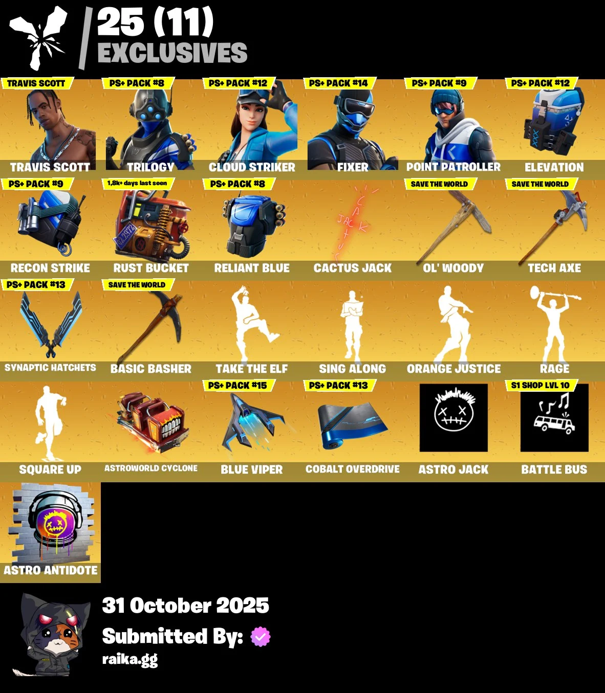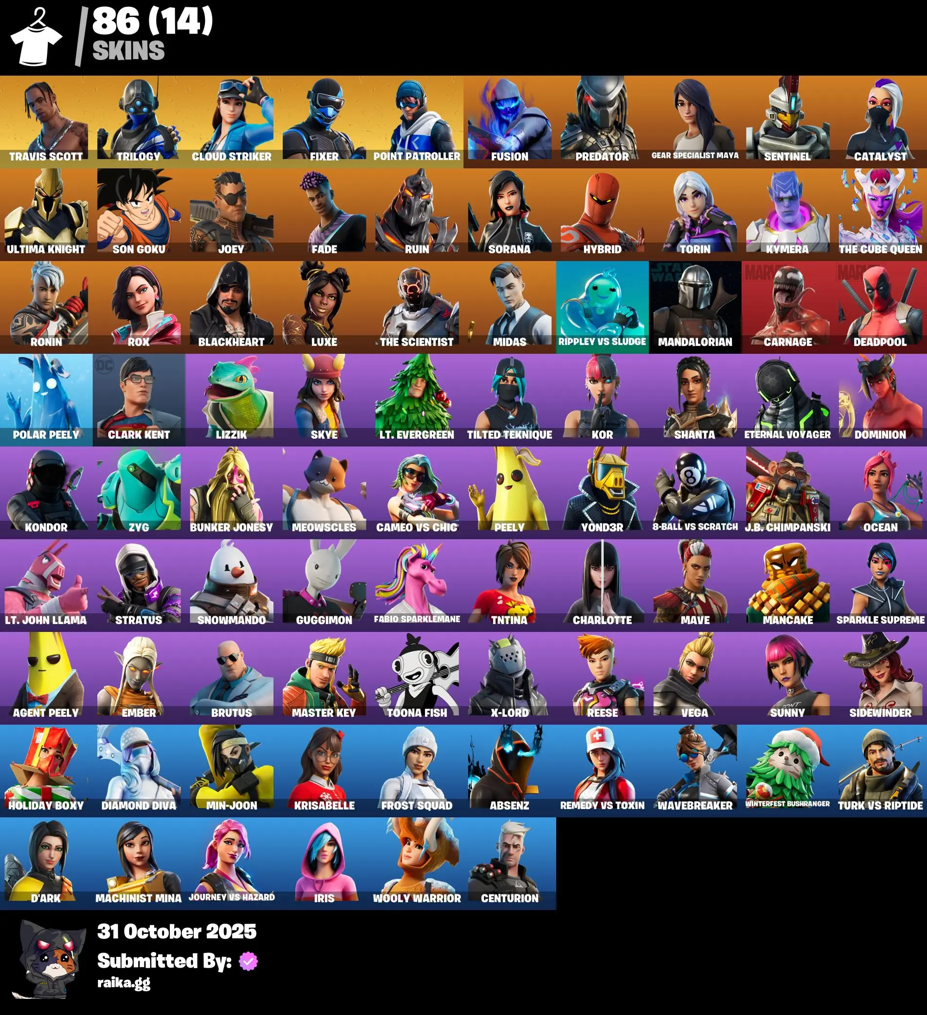 [PC/PSN/XBOX] 86 skins | Travis Scott | Trilogy | Cloud Striker | Fixer | Point Patroller | Fusion | Predator | Gear Specialist Maya | Sentinel | Catalyst | 1200 VB
