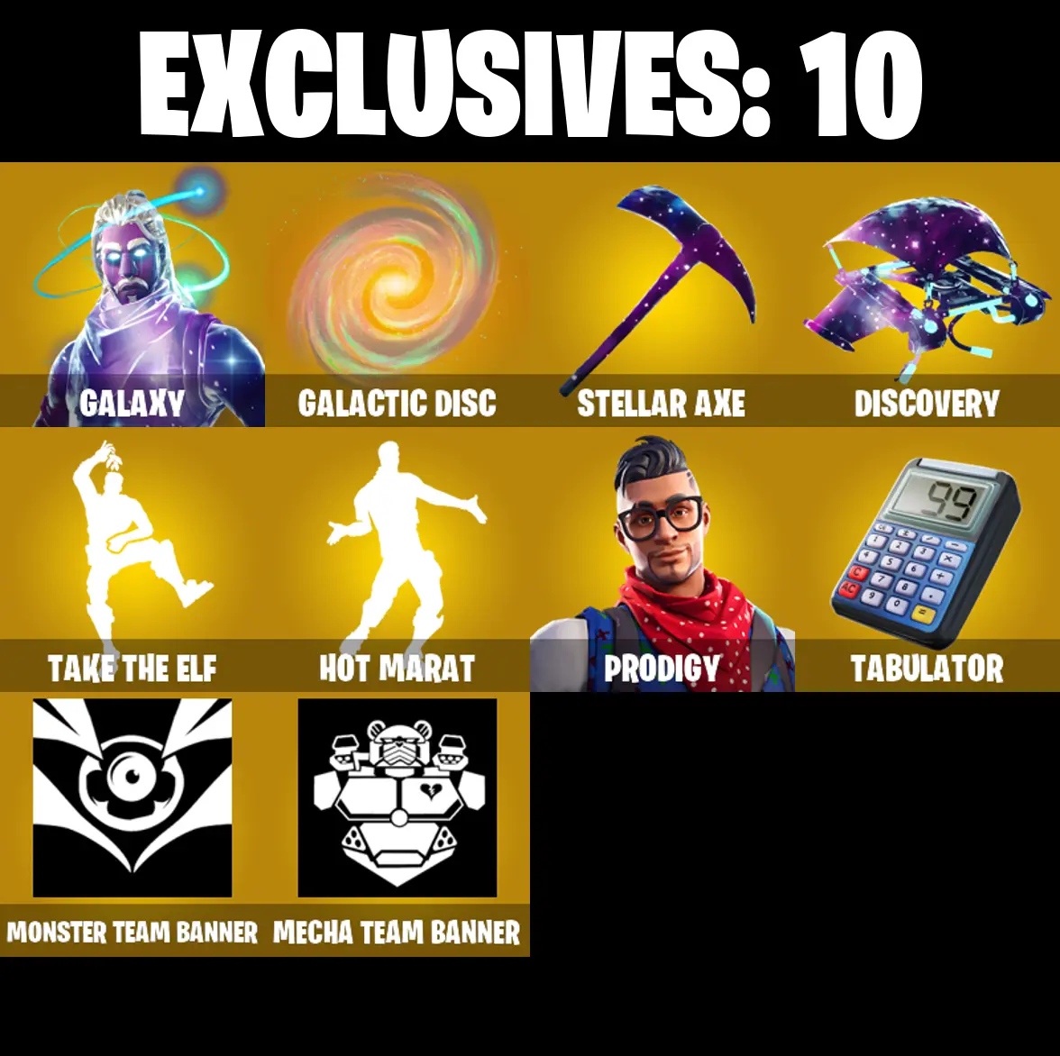 PC/PSN/XBOX ♨️9 skins ✨ Galaxy ✨ Galactic Disc ✨ Stellar Axe ✨ Discovery ✨ Peely ✨ Take The Elf ✨ Hot Marat ✨ Prodigy ✨ Blackheart ✨ Hybrid ✨ #B868