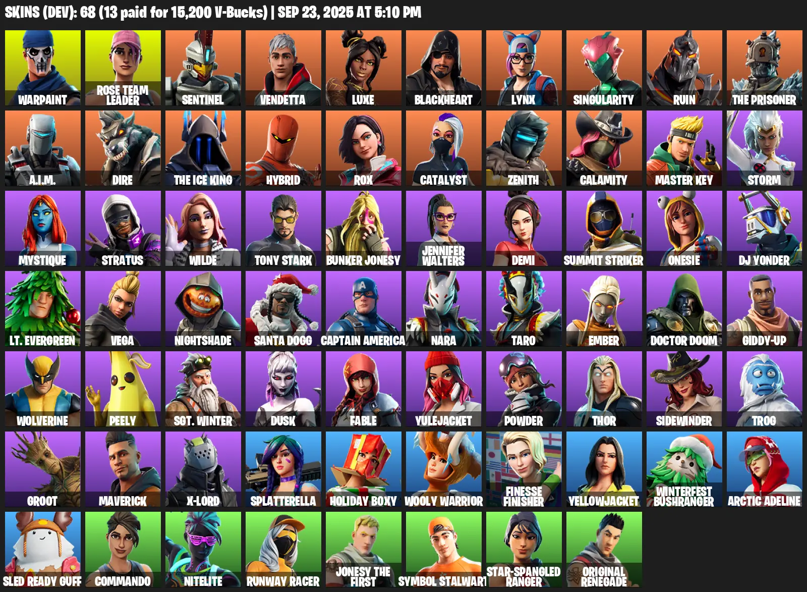 [PC/PSN/XBOX] | 68 skins | OG STW | Warpaint | Rose Team Leader | Sentinel | Vendetta | Luxe | Blackheart | Lynx | Singularity | #COE1998 | #MBFN