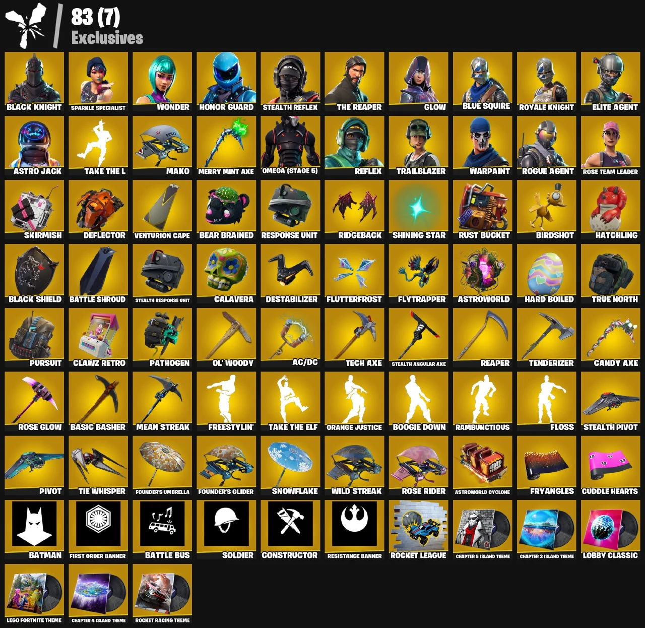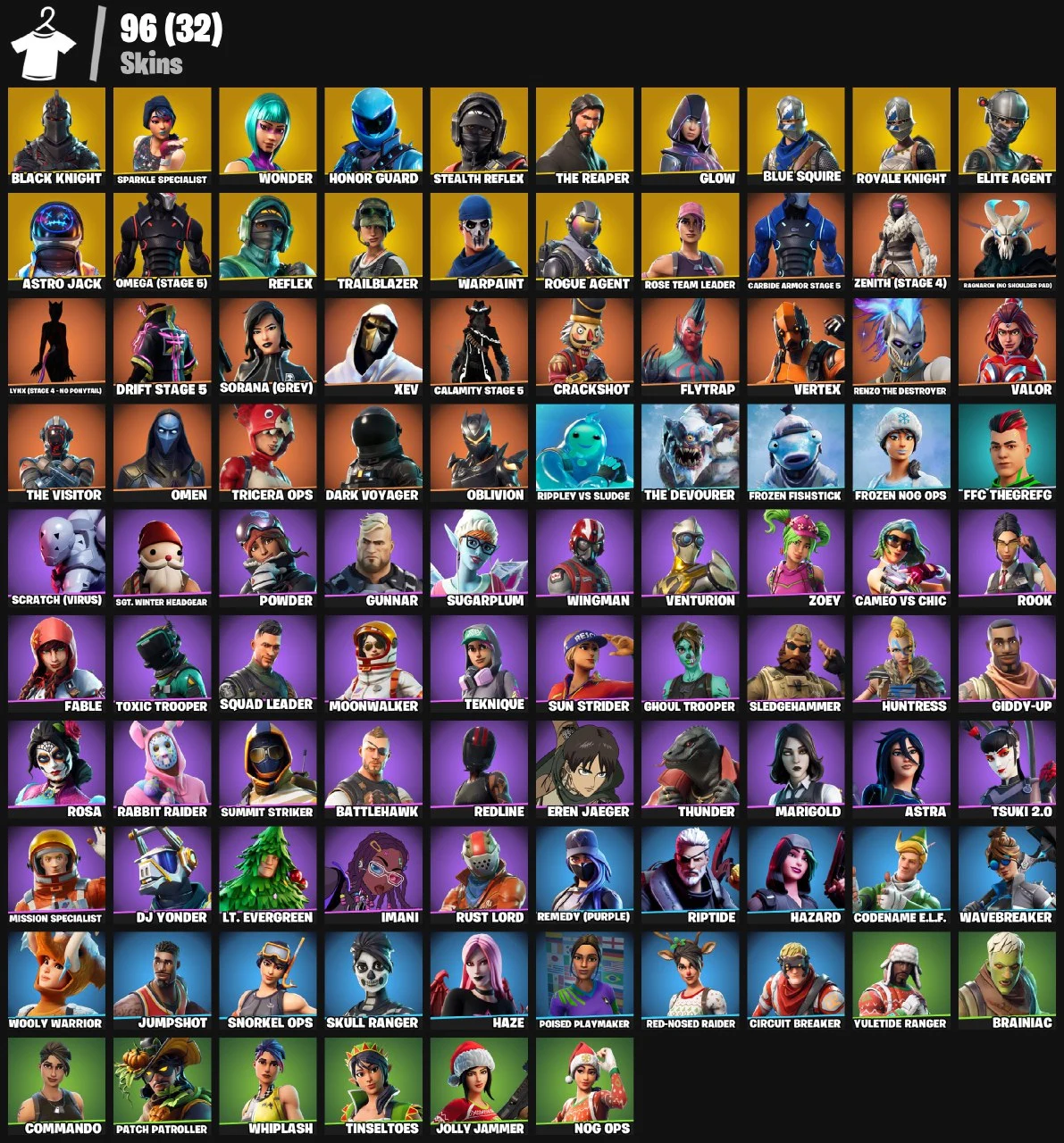⭕PC/PSN/XBOX⭕96 Skins + Black Knight + Wonder + MINTY + Honor Guard + Stealth Reflex + Glow + Astro Jack + Reflex + The Reaper + Take The L + Floss + Sparkle Specialist + Elite Agent + Blue Squire + Royale Knight + OG STW + MAX OMEGA + Trailblazer |200 Vb