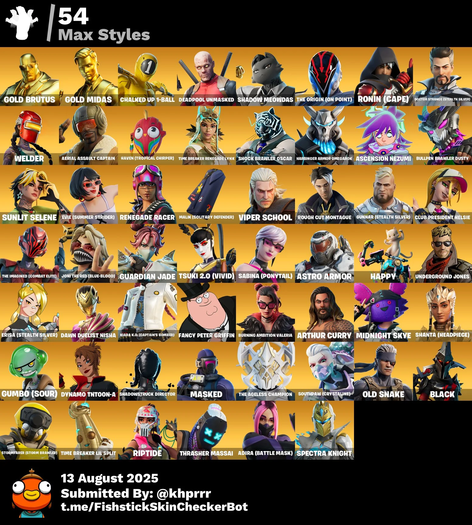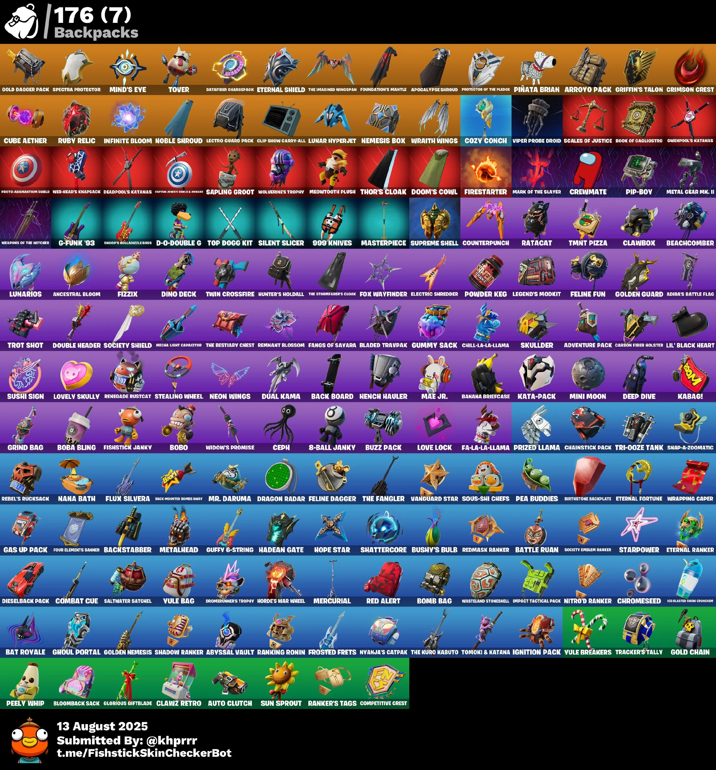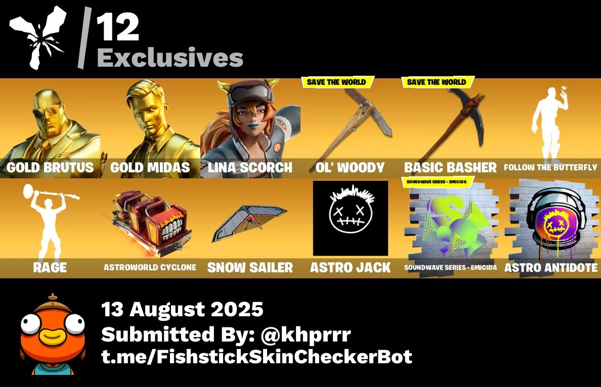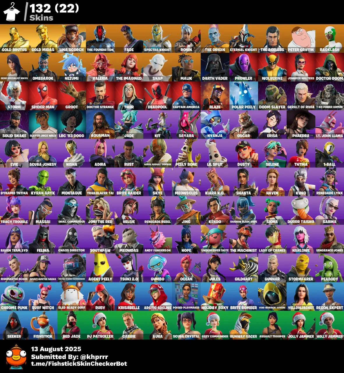 [PC/PSN/XBOX/Nintendo] 132 skins F/A : | Gold Brutus | Gold Midas | Lina Scorch | Ol' Woody | Basic Basher | Follow the Butterfly | Rage | Astroworld Cyclone | Snow Sailer