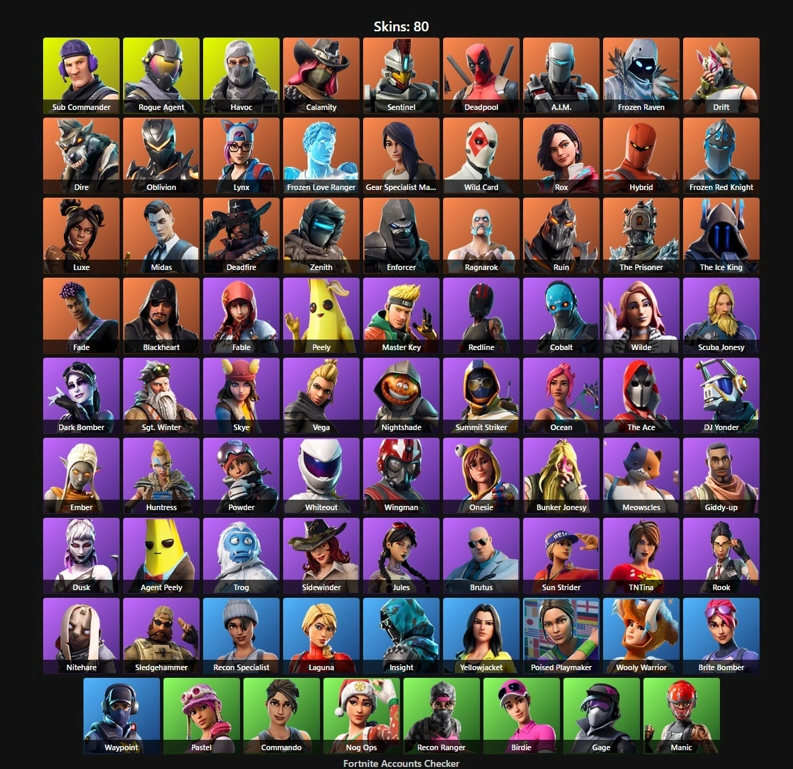 PC/XBOX 80 Skins⚡ | Havoc | Deadpool | Midas | Peely | Sub Commander | Rogue Agent | Calamity | Sentinel | A.I.M. | Frozen Raven | Drift | Dire | Oblivion