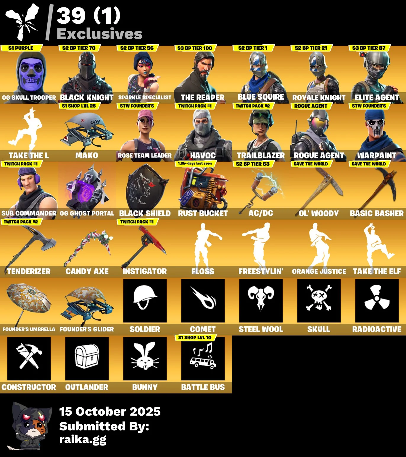 🌕 (PC/XBOX/NINTENDO/IOS/ANDROID) OG STW ⭐️ | ❄️ OG SKULL TROOPER ☘️ | 🦋 BLACK KNIGHT ✨ | ⚡️ THE REAPER 🧊 | 🧩 TAKE THE L ☃️ | 🌸 LEVIATHAN AXE 🎗 | 🚚 INSTANT DELIVERY 🛩