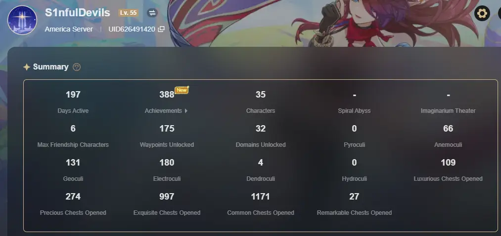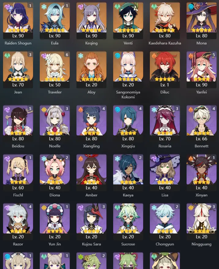 [NA HANDLEVELED] AR 55 | Heroes 35 (Jean C3, Raiden Shogun C1, Eula C1, Keqing C0, Venti C0) | Leg heroes/weapons+Full Access