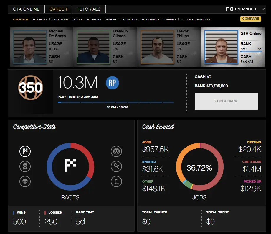 $78.8M | 2 billion casino chips | 300 cars | 20 modded outfits | all unlocks | max stats | STEAM / SOCIAL CLUB / ROCKSTAR / PC / ENHANCED | Changable Email | Handcrafted Quality