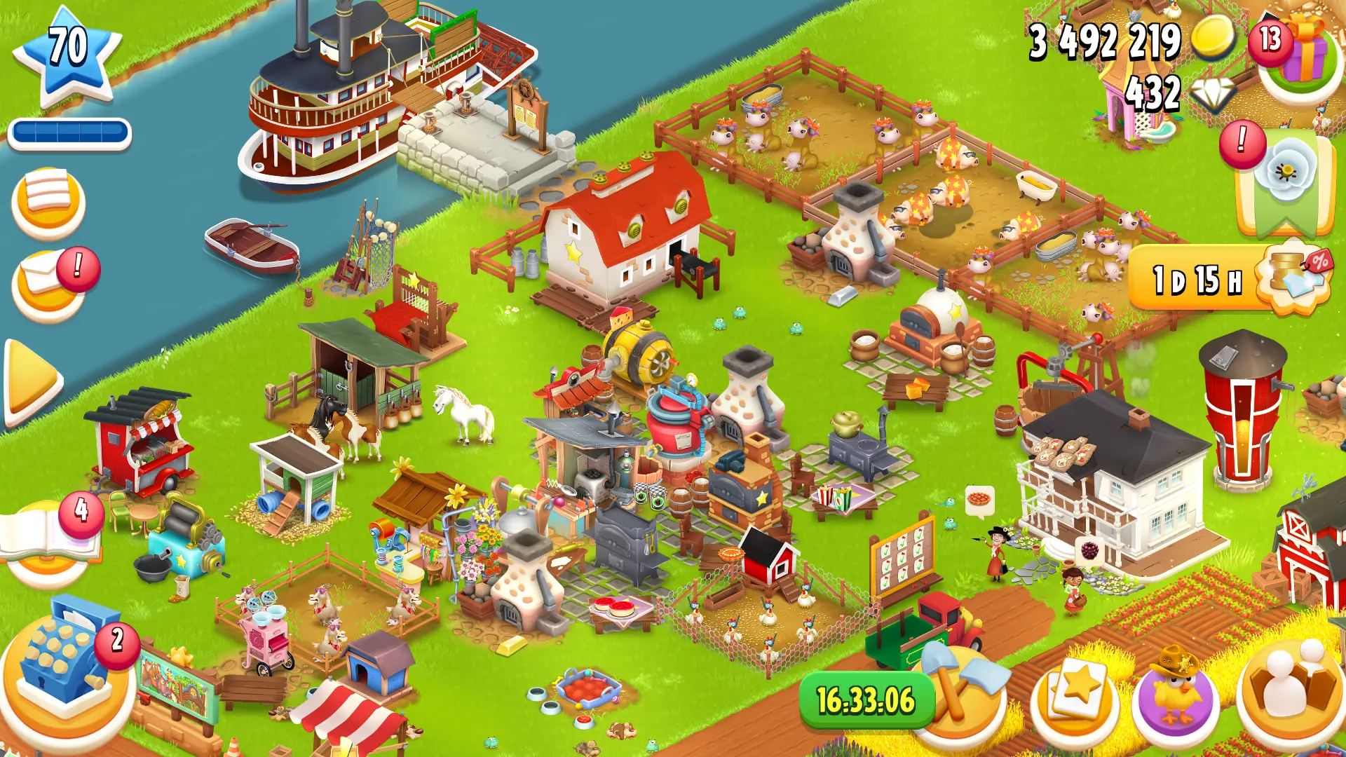 🏆 Level 70 🏆 Hayday Farm ✨3000Barn✨ 1000 Silo 🏚️ 3.5 Million Gold Coin 🏚️99.99 open Land TopSide Cleaned Map 🪙 432 Gems 💎 Full Access 🎯3,492,000 Gold Coin