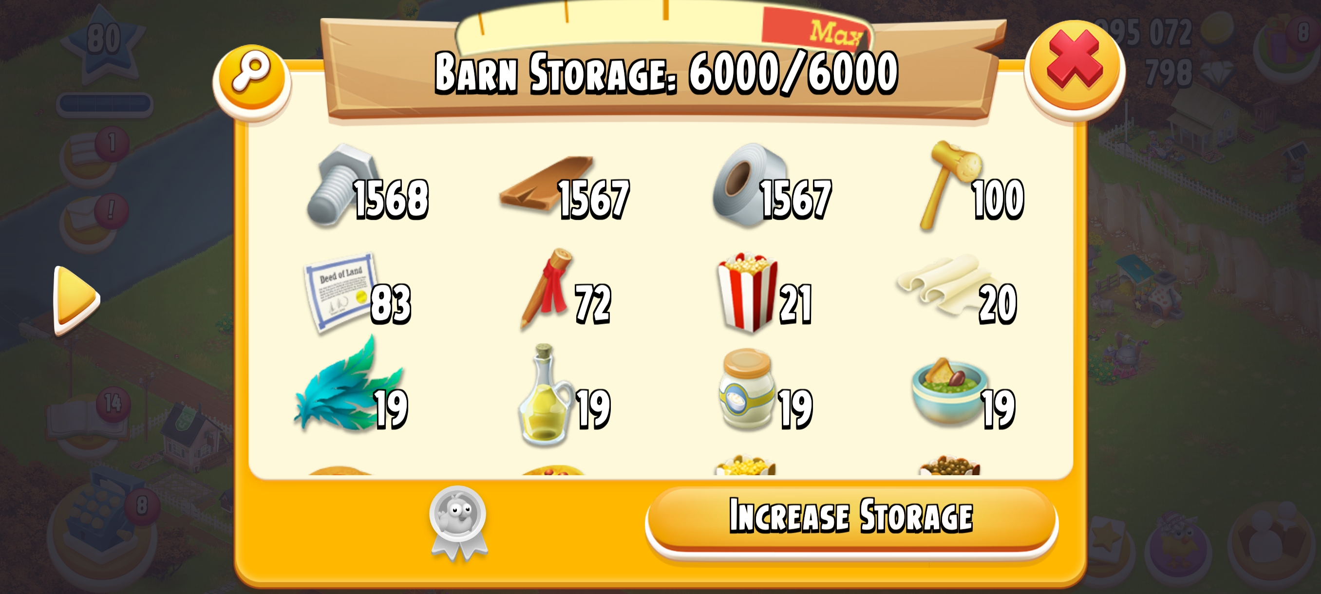 🏆 LEVEL 80🏚️ 6000 Barn Storage🛠️ Fully Filled With Tools🌍 Main Land Open🌾 2050 Silo Storage💰 6M+ Coins & 💎 798 Diamonds⚡ Instant Delivery