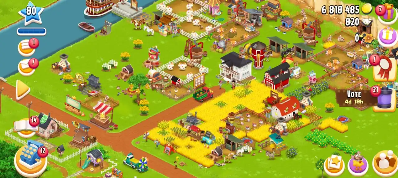 LEVEL 80 | 6000 Barn Storage | Fully Filled with Barn Tools | Mail Land Open | 2000 Silo Storage | 6.8M+ Coins & 820 Diamonds | Instant Delivery