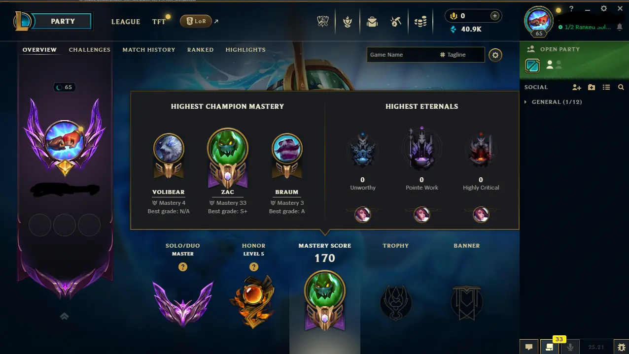 ⭐ EUW 💙 Master 525LP ✅ %59 WR 🔥 Support Role ✅ Full Access ✅