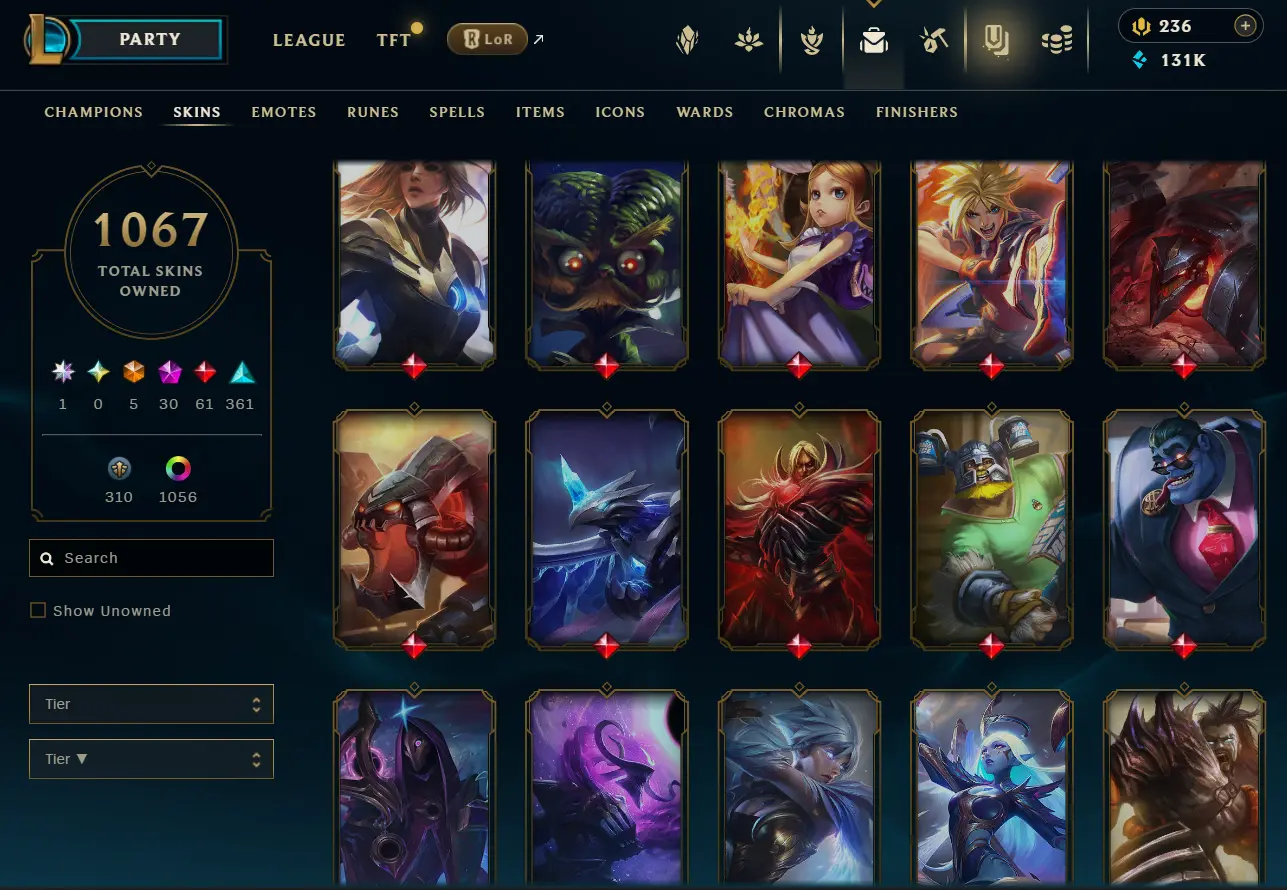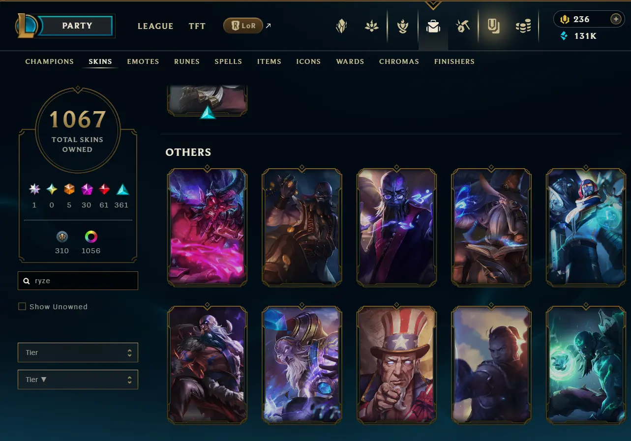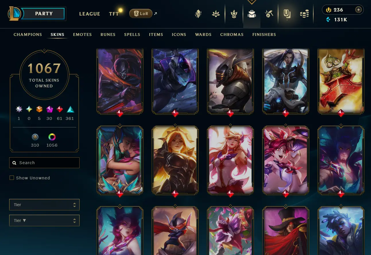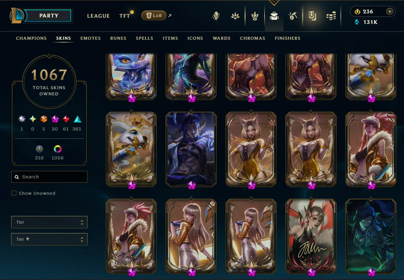 [NA] 1067 skins ~ immortalized Legend Ahri +All Rare Skins Like: Black Alistar + Silver Kayle + All Pax Skins + Victorious Jarvan IV&Janna + Tft Loot+OGE