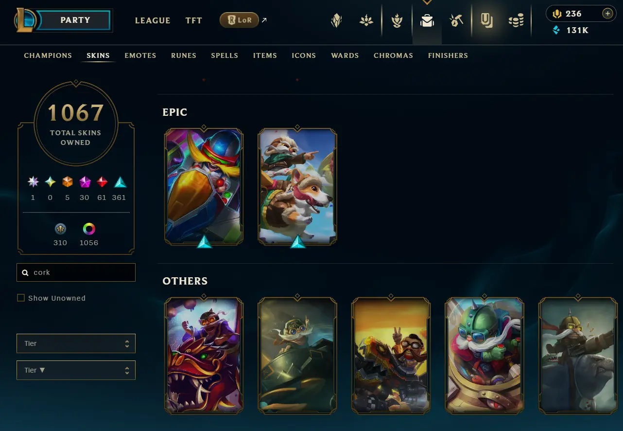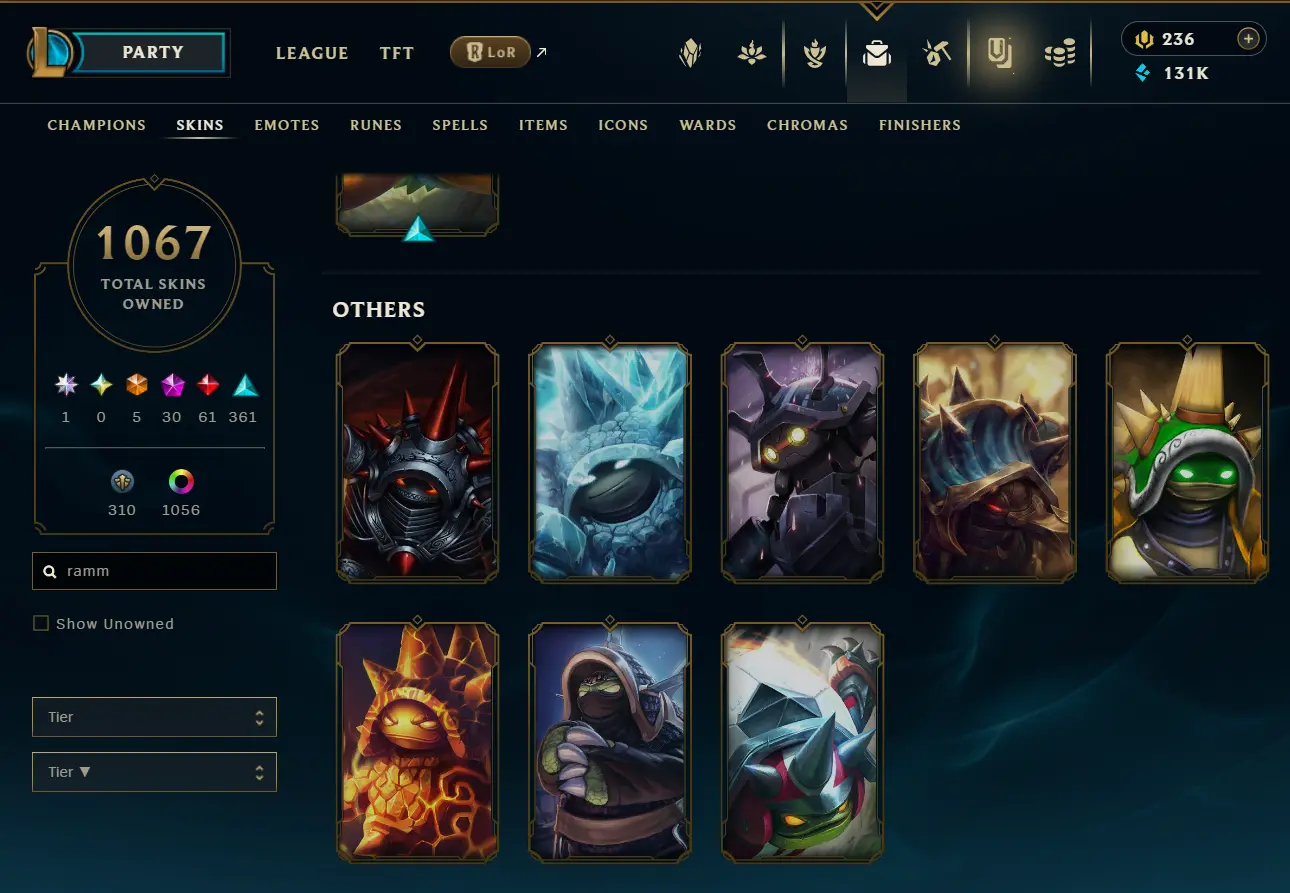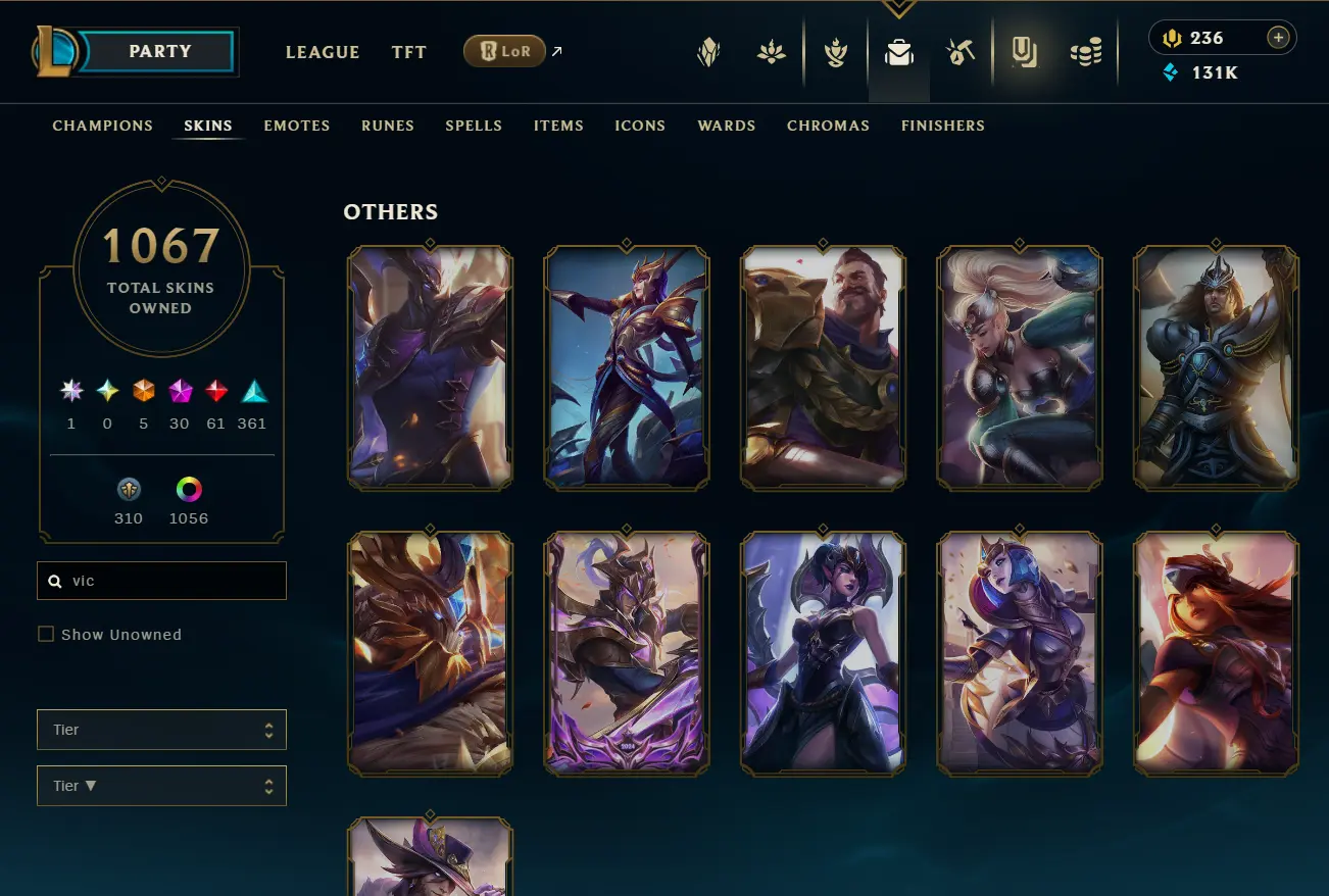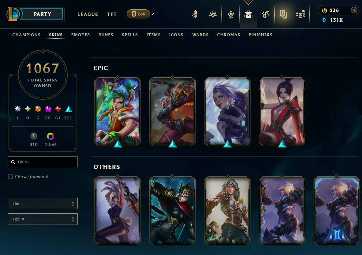 [NA] 1067 skins ~ immortalized Legend Ahri +All Rare Skins Like: Black Alistar + Silver Kayle + All Pax Skins + Victorious Jarvan IV&Janna + Tft Loot+OGE