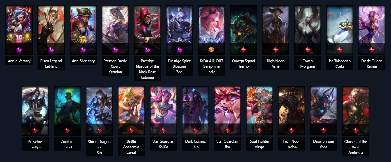 UnRanked┃150 skins┃131 Champs┃(6 Mythic) Prestige Spirit Blossom Zed Prestige Faerie Court Katarina Zombie Brand High Noon Ashe Storm Dragon Lee Sin Dawnbringer Yone High Noon Lucian