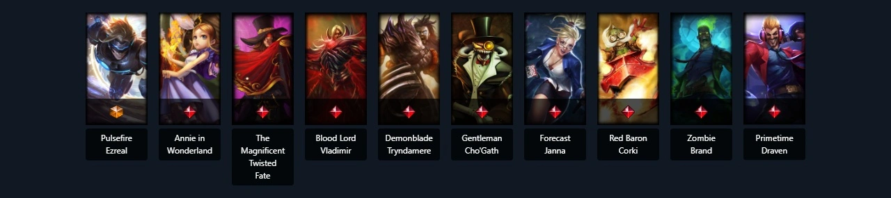 Unranked┃161 skins┃143 Champs┃ UFO Corki Demonblade Tryndamere Primetime Draven Blood Lord Vladimir Annie in Wonderland Gentleman Cho'Gath Red Baron Corki