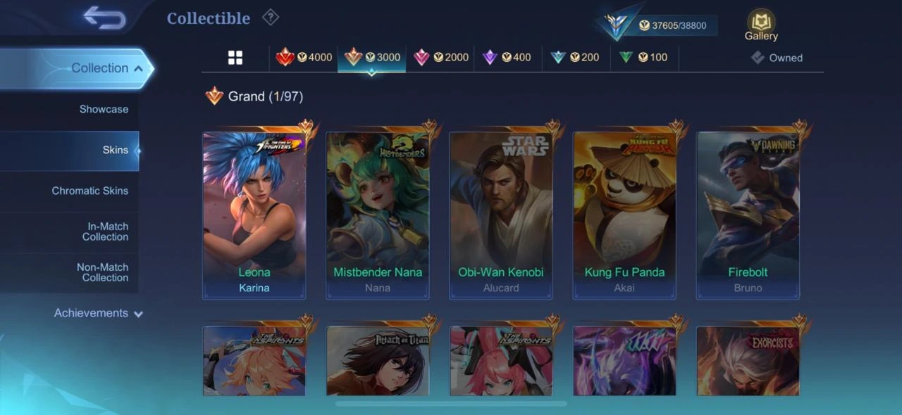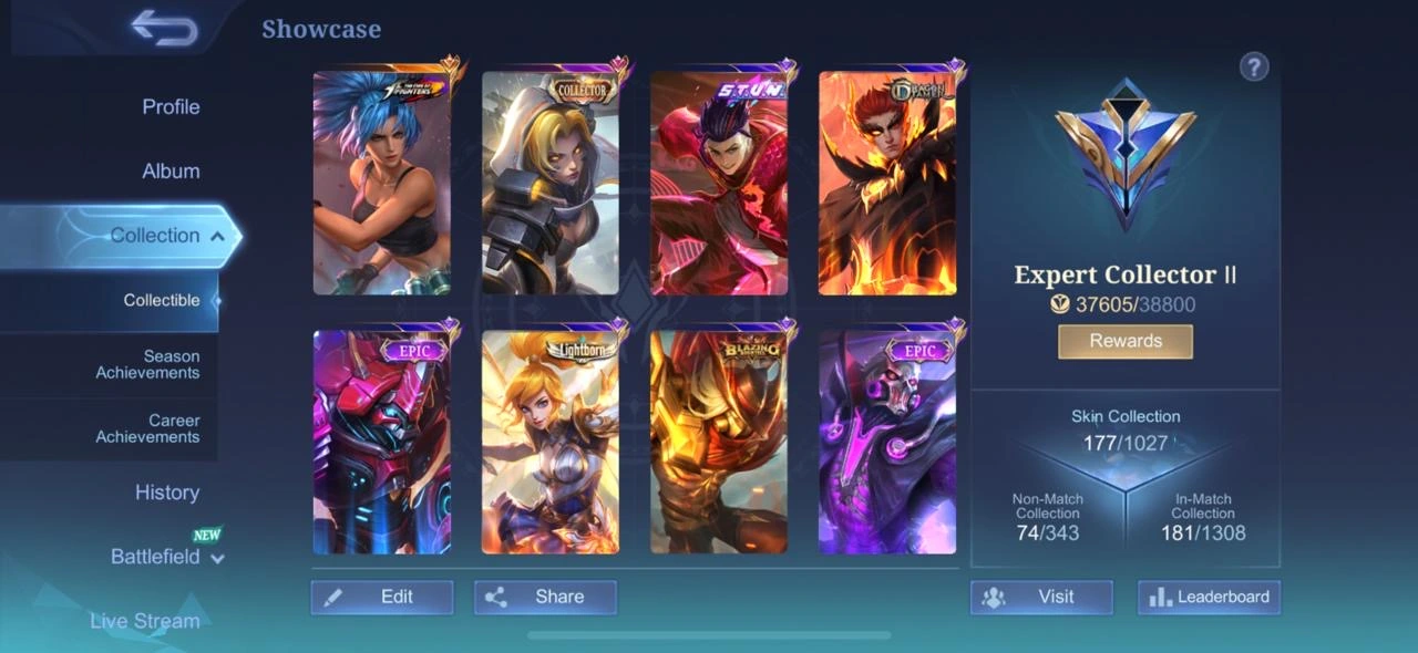 Expert Col II🔥177 Skins🔥Stun Chou🔥Natalia Cc🔥KOF Karina🔥Max emblem and Hero🔥Acces Full🔥Cheapest and Safe Account