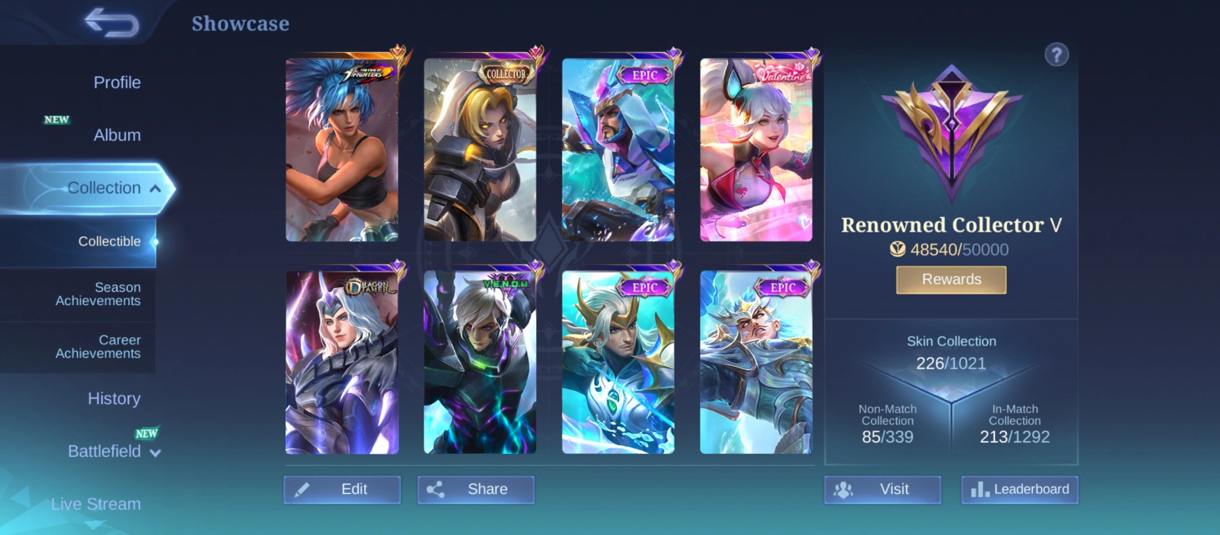 GG849|Lvl 92|RENOWNED CC 5|ALL EMBLEM MAX|EX IMMORTAL S32|226 SKIN|129 HEROES|NATALIA COLLECTOR|10 EPIC|BADANG SAINTSEIYA|JULIAN MEOWKIN
