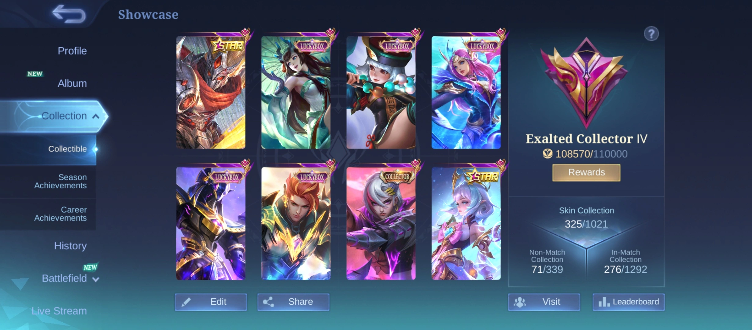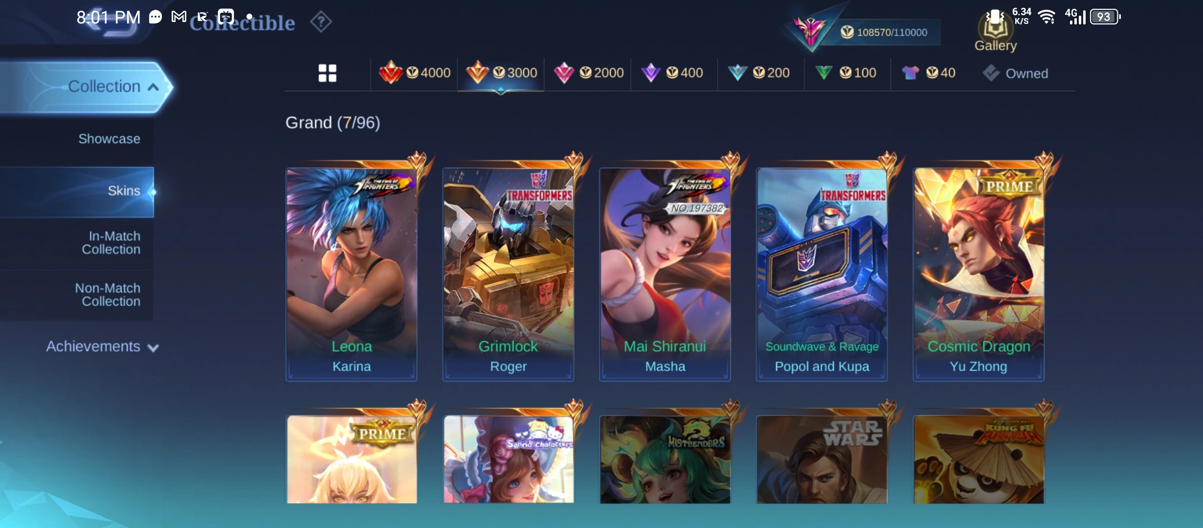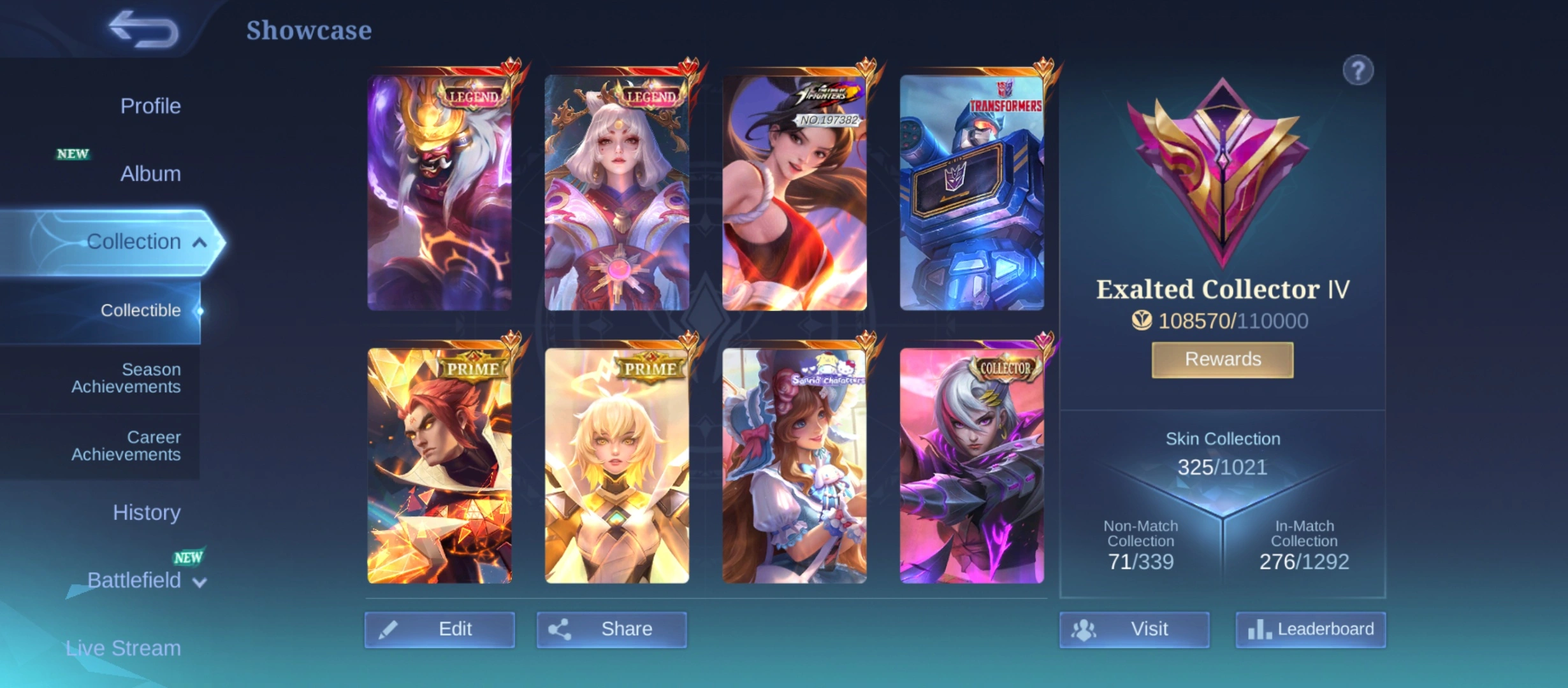 GG889|Lvl 62|EXALTED CC 4|ALL EMBLEM MAX|325 SKIN|2 LEGEND(FRANCO,LUNOX)|MASHA KOF|POPOL KUPA TRANSFORMER|FLORYN SANRIO|2 PRIME|BENED COLLECTOR|LEGEND 5