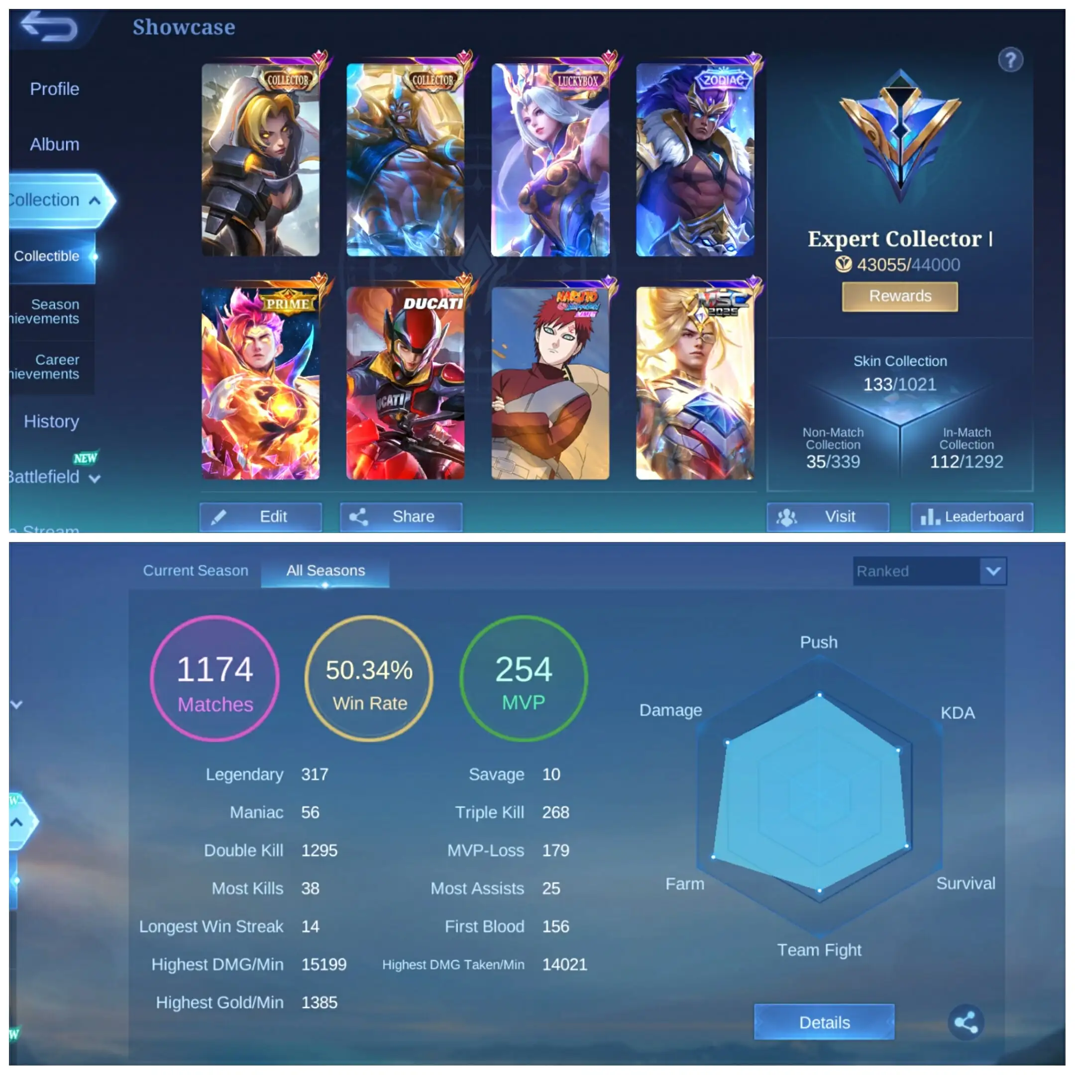 Level: 46🔰Skin: 133🔰Hero:77🔰Win Rate:50%🔰Aldous collector,Claude prime,irithel Ducati,With 130 Magic Core,High rank mythic Glory 74🌟🔰Full Access[FAST DELIVERY]