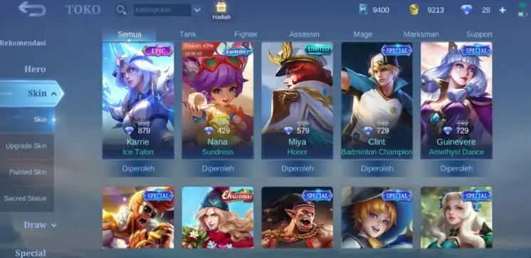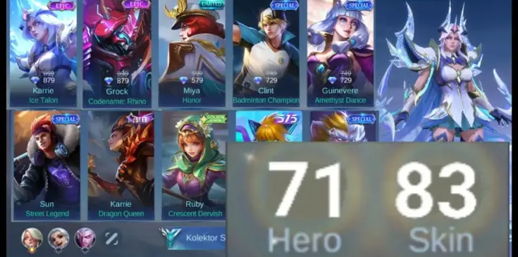 ML287 97 HEROES 204 SKINS MAX Emblems KOF Guinevere Athena Karina Leona PRIME Claude Cosmic Blaze (G)