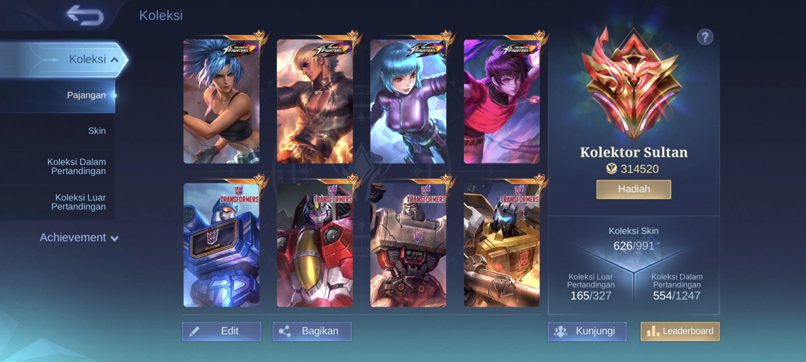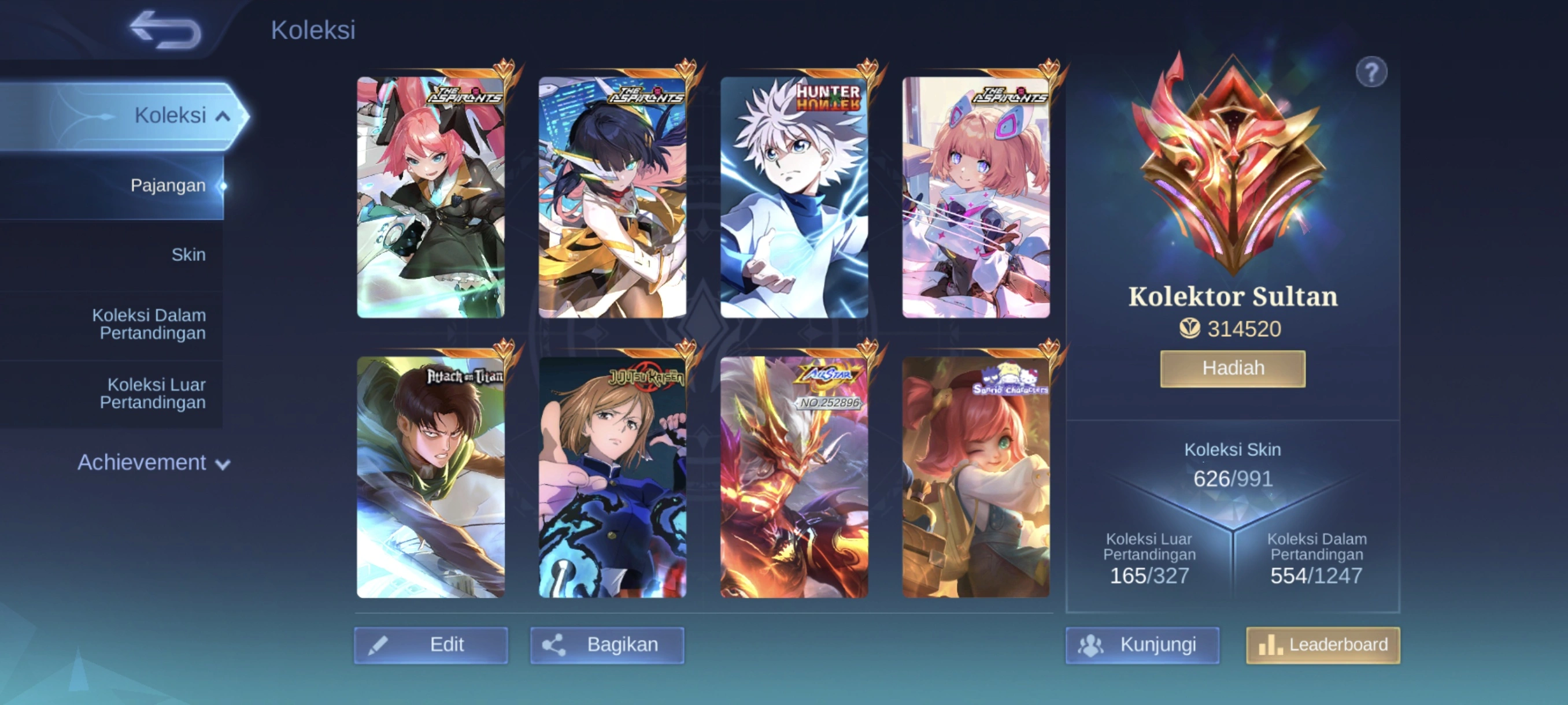 MM275|Lv134|626Skin|WORLDCOLLECTOR|HIGHWR80%|6LEGEND|9COLLECTOR|4KOF|3DAWNING|3ASPIRANTS|ALLSTAR Moskov|4TRANSFORMERS|2DUCATI|AOT Levi|SOULVESSELS Aamon|Killua