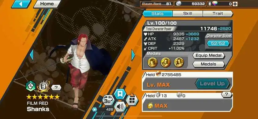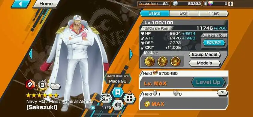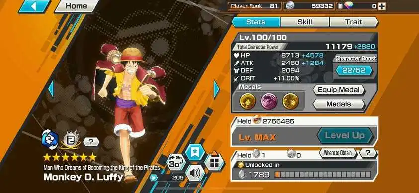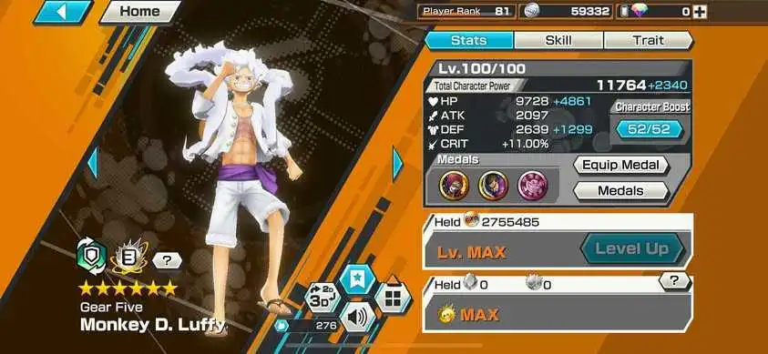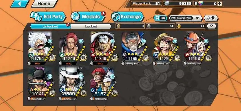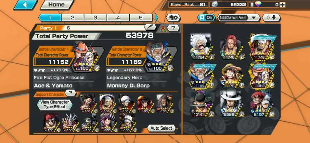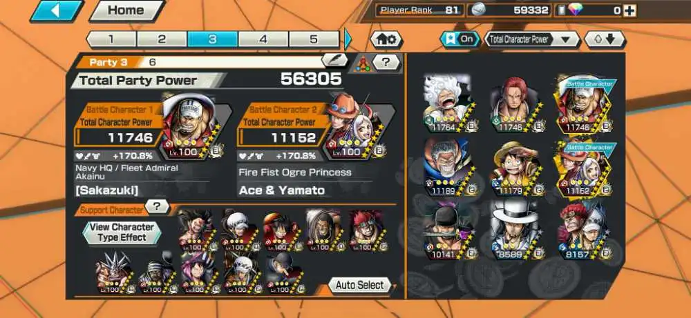 [3276][IOS+ANDROID] 9 EX / HB 88 / 3 EX FULL BOOTS / Luffy G5 +Shanks +Akainu(Full Boots 52/52)+Garp + Ace Yamato +Luffy Blue +Kid Law +Lucci +Zoro , Support 171%