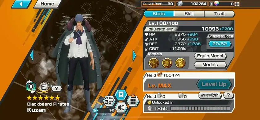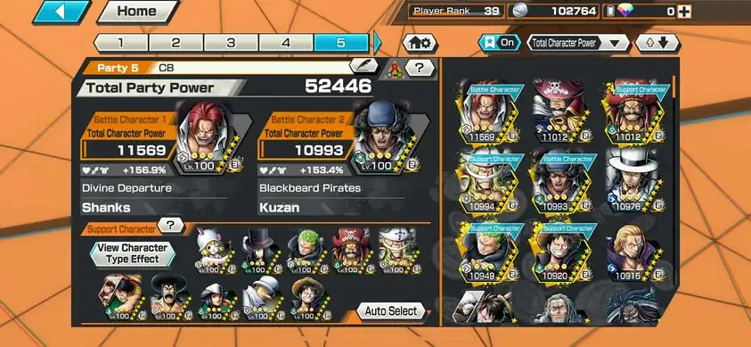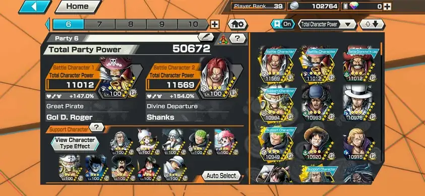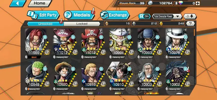[3342][IOS+ANDROID] 6 EX MAX / HB 18 / Shanks Light + Kuzan + Lucci + Roger Dark + Roger Green + Whitebeard , Support 161% , Good Medal