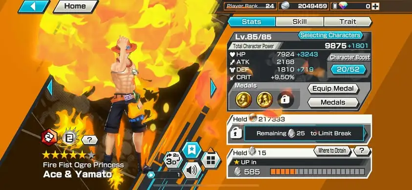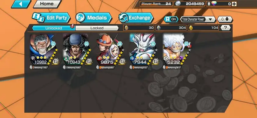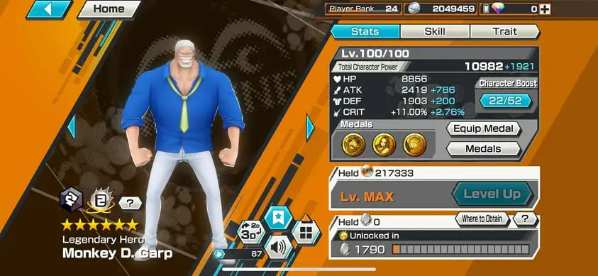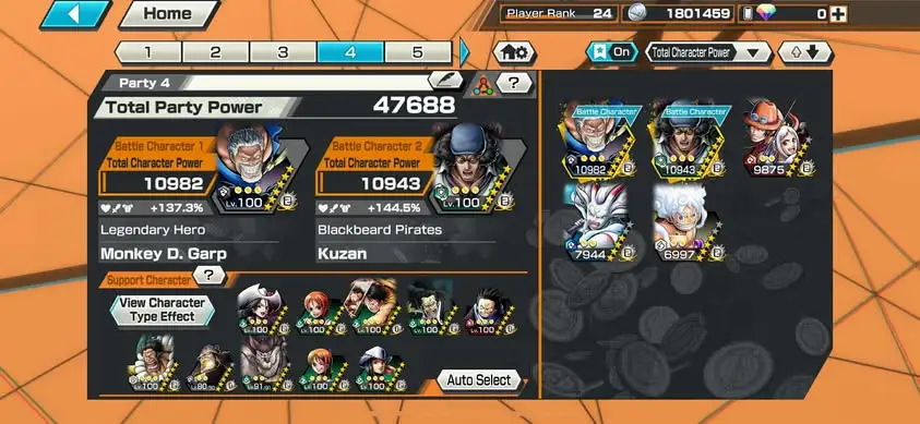 [3357][IOS+ANDROID] 5 EX / Kuzan + Garp + Ace Yamato + Yamato Blue + Luffy Light , Support 144% , Good Medal