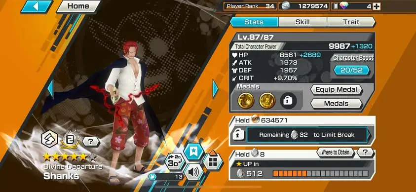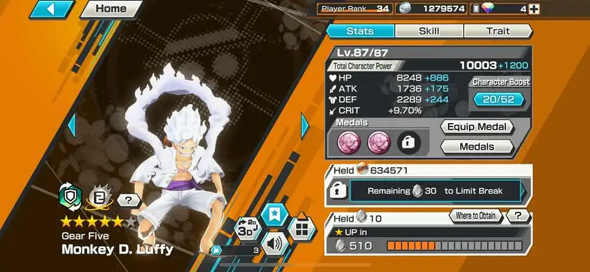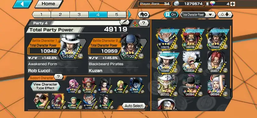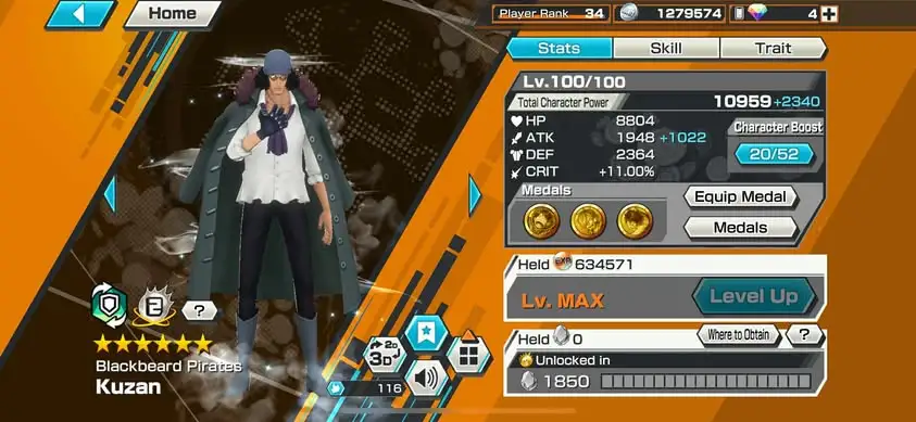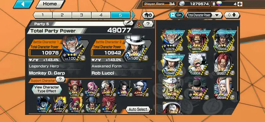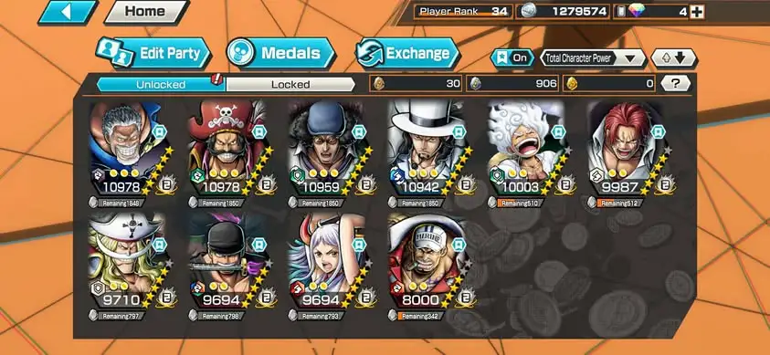 [3362][IOS+ANDROID] 10 EX / Garp + Kuzan + Lucci + Zoro + Yamato + Akainu + Whitebeard + Luffy G5 + Roger + Shanks Light , Support 145% , Good Medal
