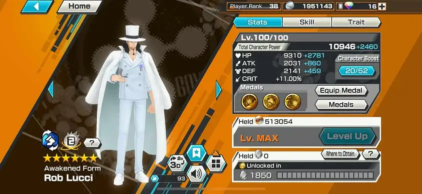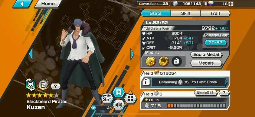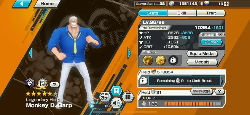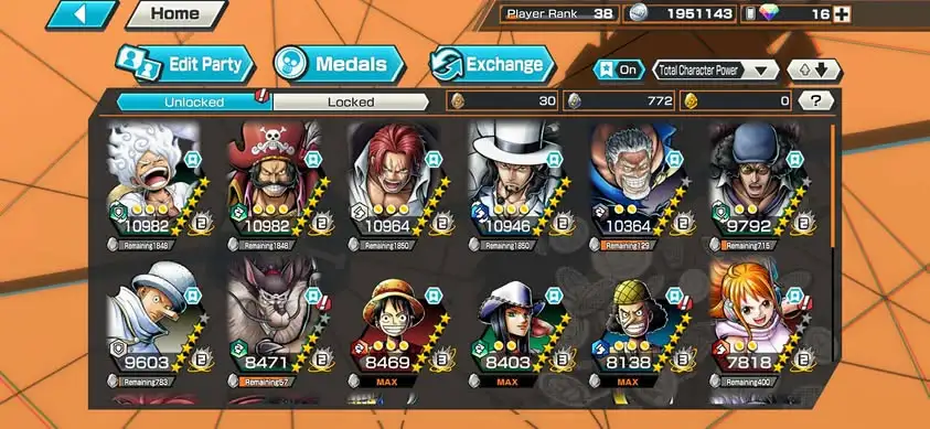 [3368][IOS+ANDROID] 6 EX / Kuzan + Shanks Light + Lucci + Garp + Roger + Roger , Support 146% , Good Medal