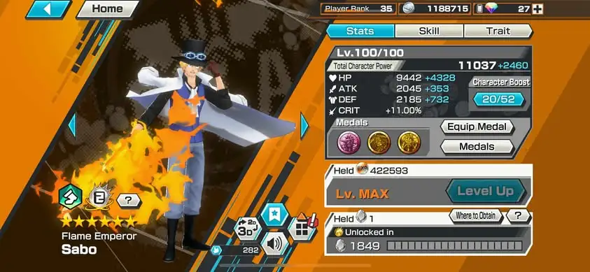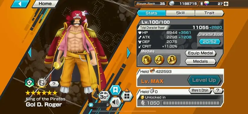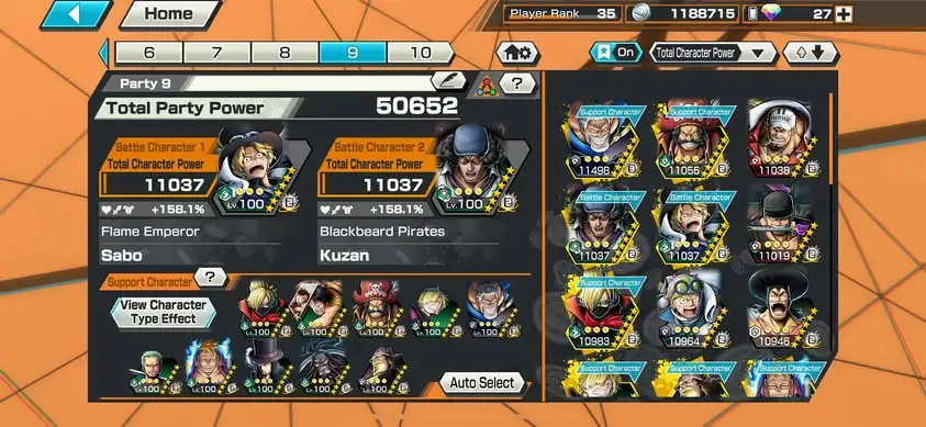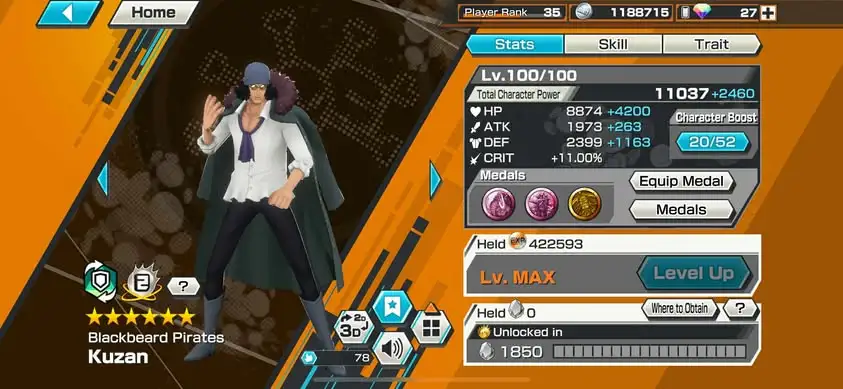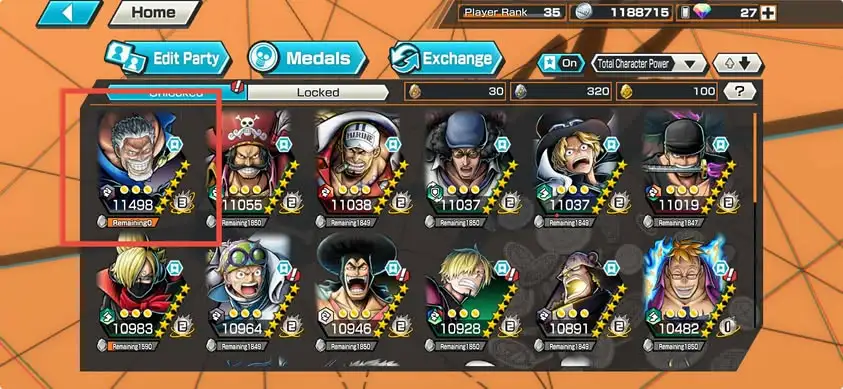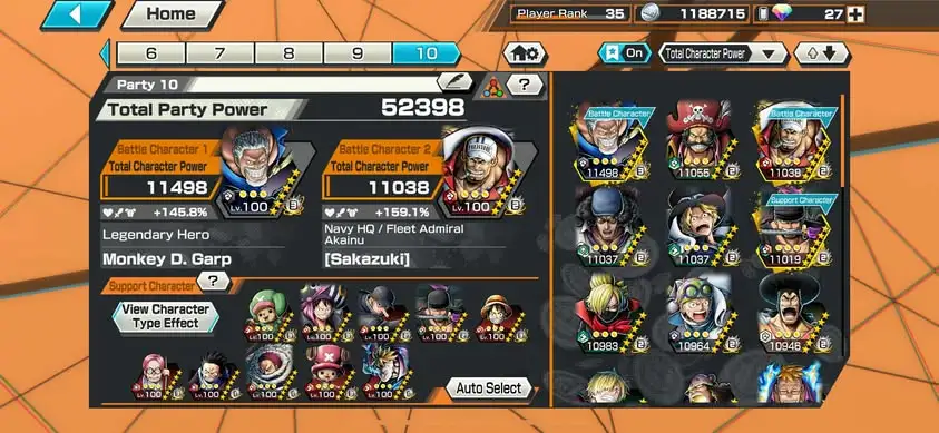 [3415][IOS+ANDROID] 6 EX MAX / HB 41 / Garp Can Up B52/52 + Kuzan + Sabo + Akainu + Roget + Zoro , Support 159% , Good Medal