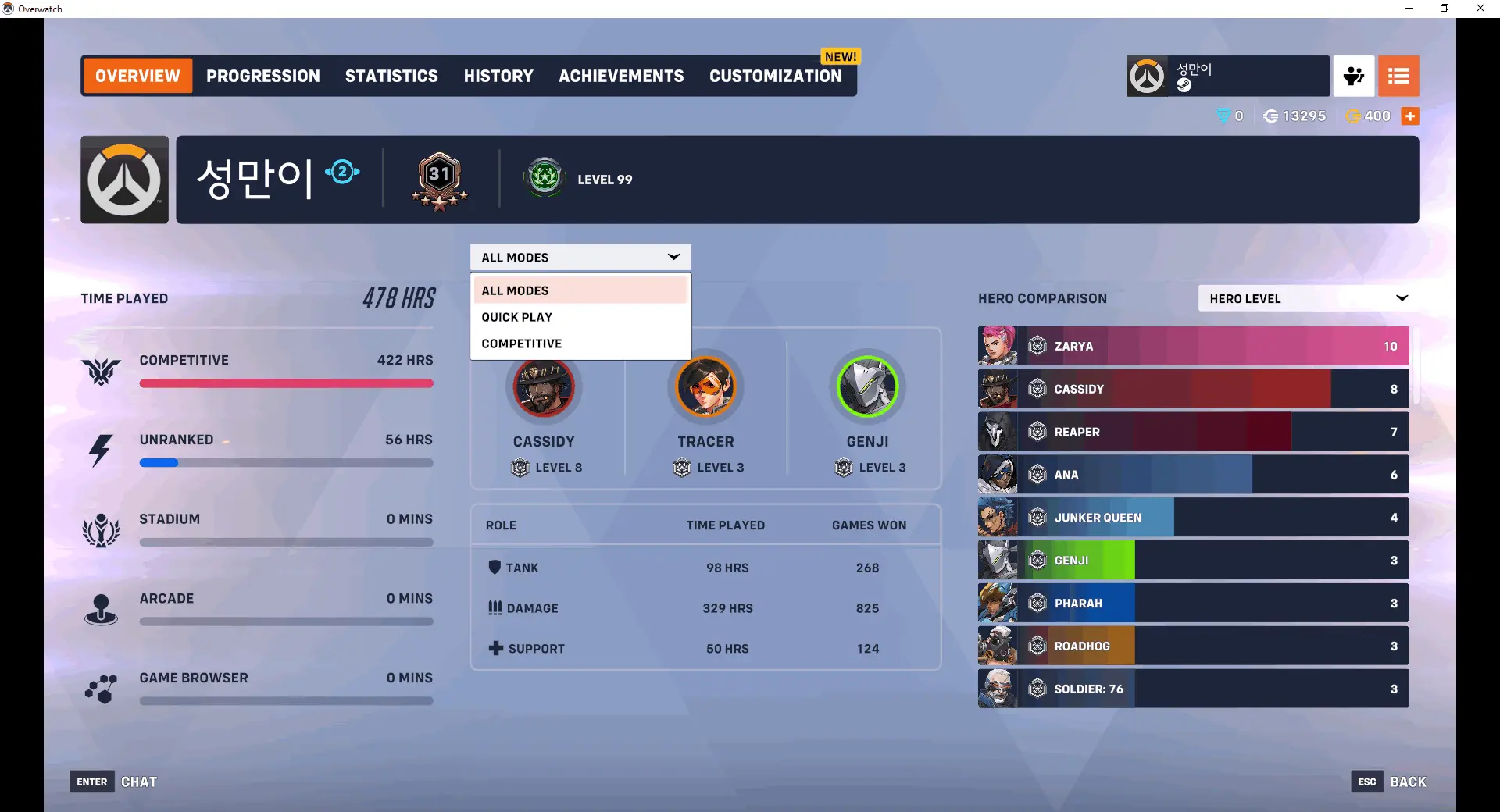 Steam Account + 203 SKINS + 6 Golden Weapon+GENJI SENTAL + GENJI NIHON + CASSIDY BLACKWATCH + WIDOWMAKER TALON + ANA GHOUL + WIDOWMAKER TRICOLORE + HA
