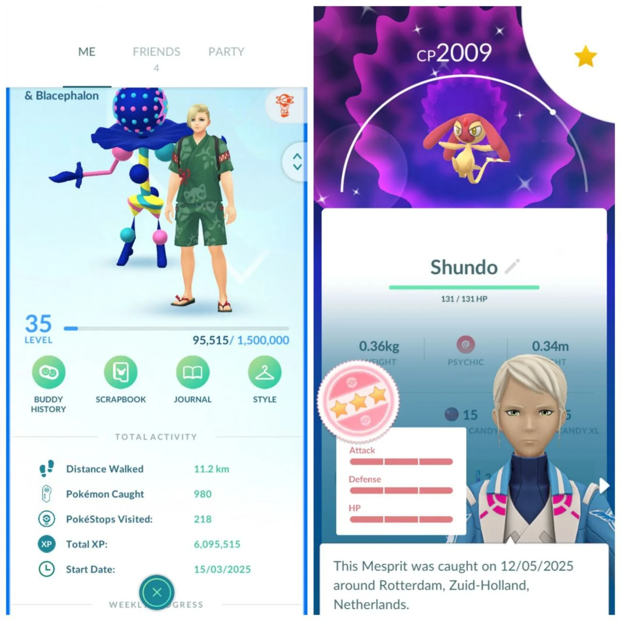 🎮 Level 35 ✨ Shiny 52 ⭐ Legendary 42 🐉 Shiny Legendary 2 💎 Total Pokémon 274 📦 Special Rare : Shundo Legendary Mesprit ✨ Full Access 🔒