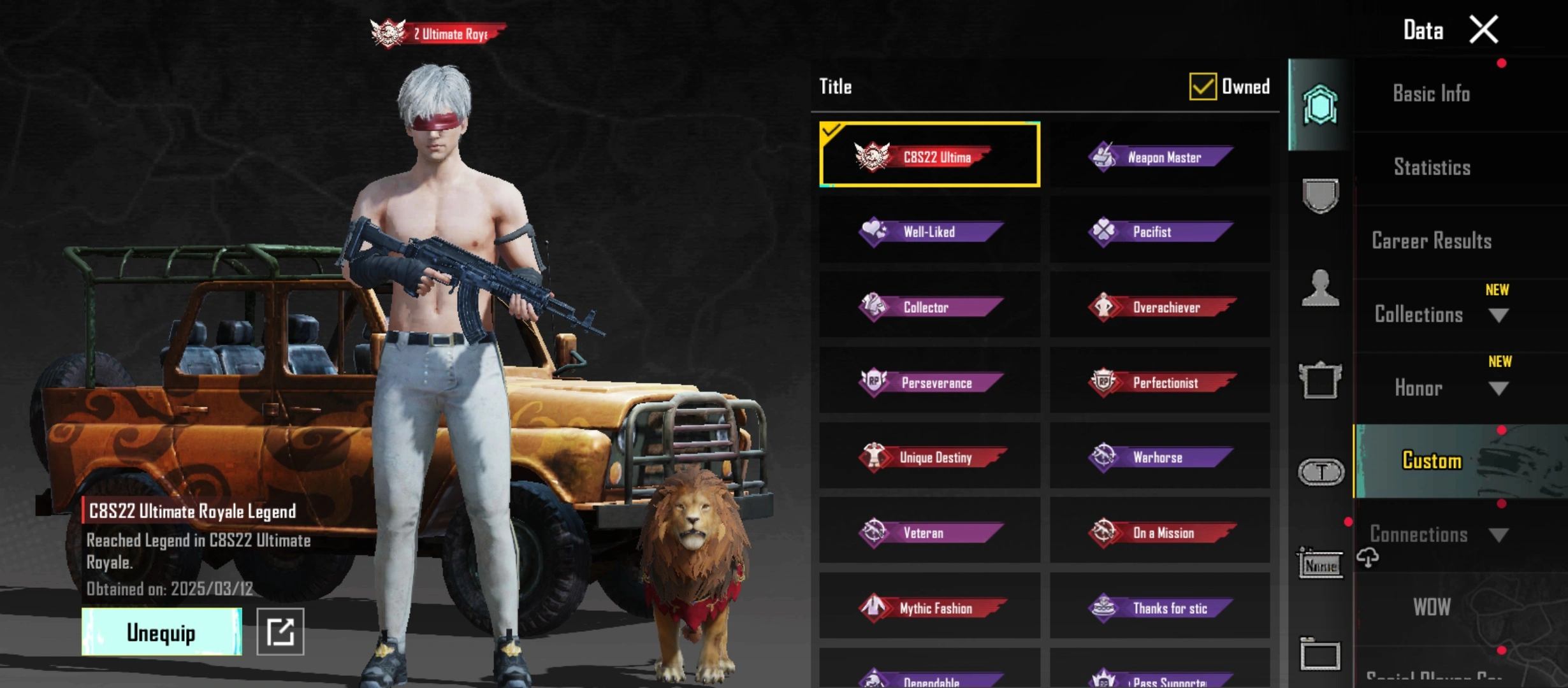 #G149|Lvl 79|AMF V|CONQUEROR C6S16|ULTIMATE ROYALE|271 SET(51 MYTHIC)|SMOOTH HITMAN SET|256 WEAPON(22 LAB)|Akm Roaring Lv.4|27 VEHICLE|LION PET MAX|ACE MASTER MIDEAST