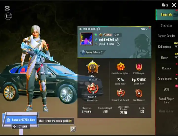 **MYTHIC FASHION ID | EXCLUSIVE INVENTORY | 🚗 DUAL SPORTS CARS • 🔫 M416 GLACIER (ON-HIT EFFECT) | 💫 ACCOUNT LEVEL 48 (HIGH) | 🔅 RP: A2 • A3° • A5 • A6° (MAX) | 1ST SLOT: EMPTY | 2ND SLOT: EMPTY | 3RD EMAIL (FRESH) | 📞 NUMBER: EMPTY ✅**