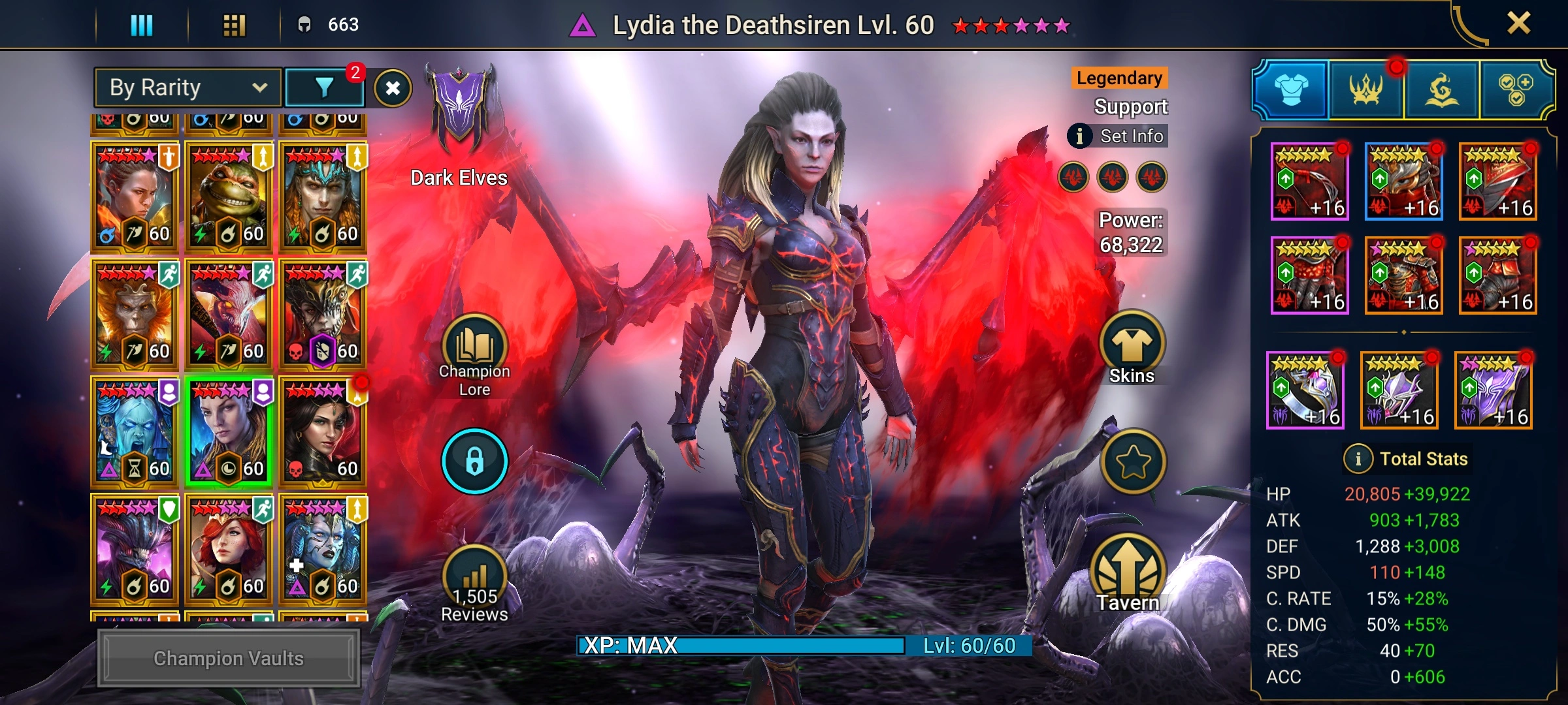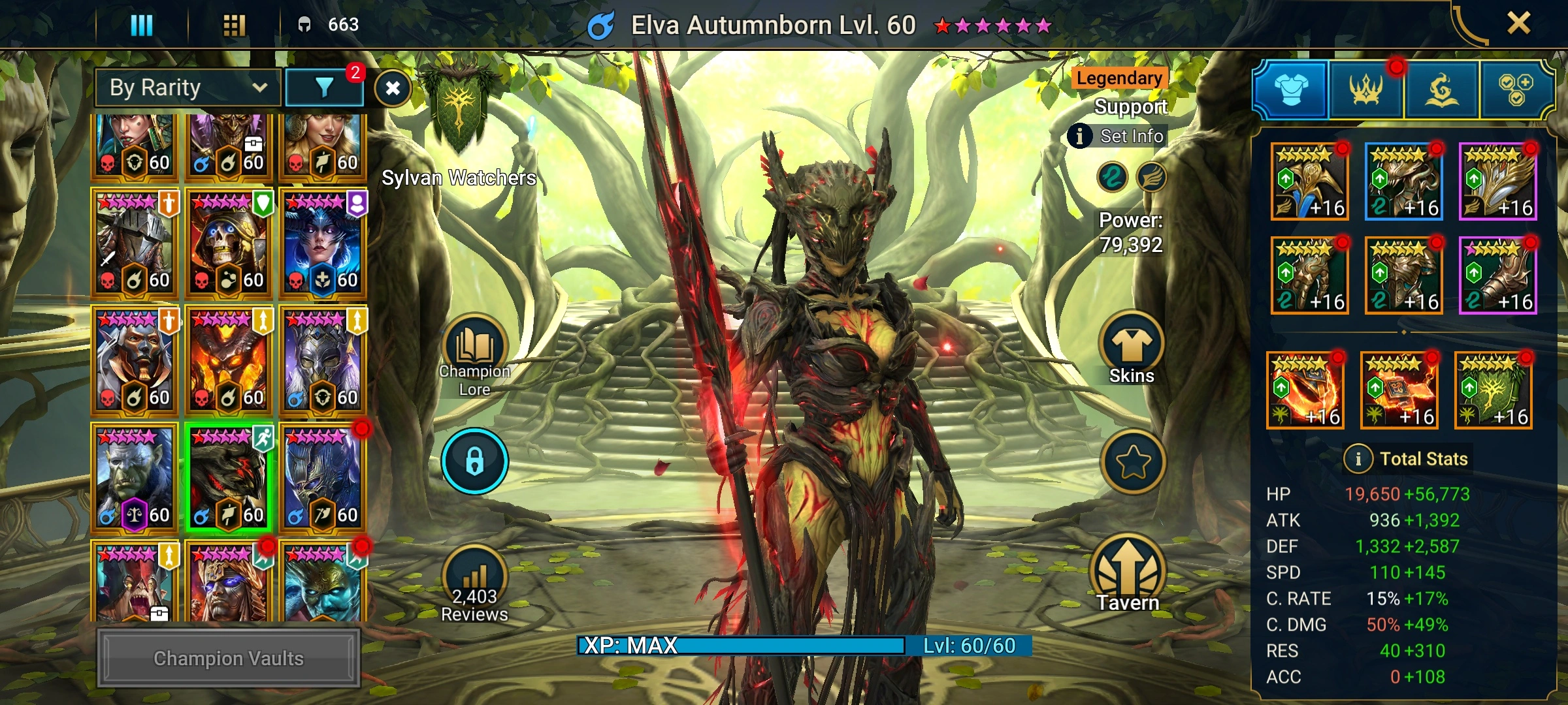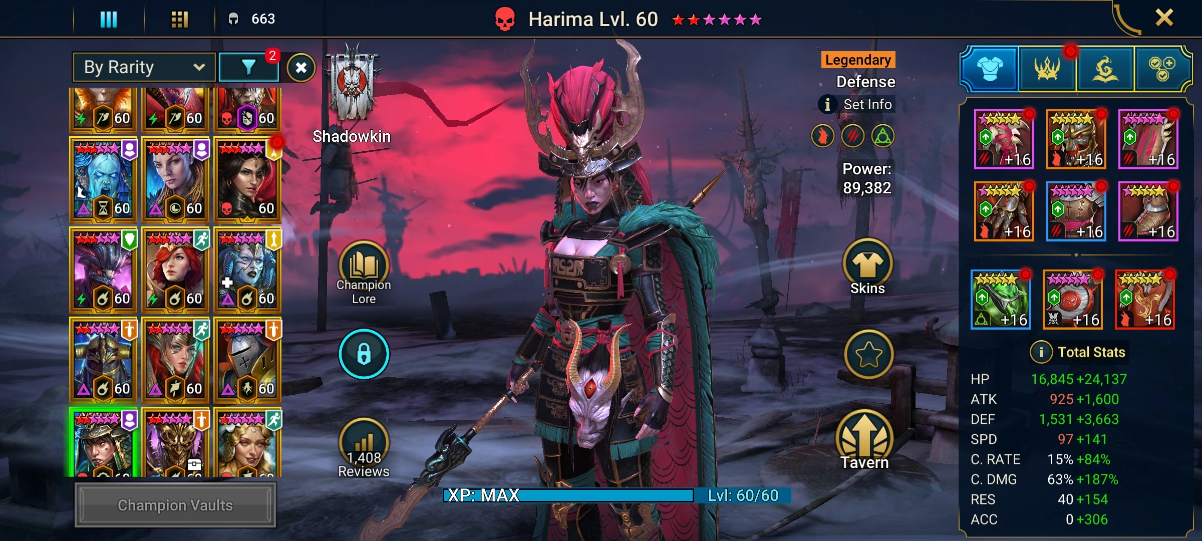 [1 Mythical Champions][10.36M] Lady Mikage(6*) + 125 LEGENDARY (Siphi,Riho,Baron,Yakarl x2,Harima,Thor(5*)/x2,Pythion x2,Falmond,Elva x2,Shyek+Krokhad,Fabian,Praeva,Teodor,Ragash,Razelvarg,Brogni...) + 1k UNM + 6112 gems + Embrys 94/100