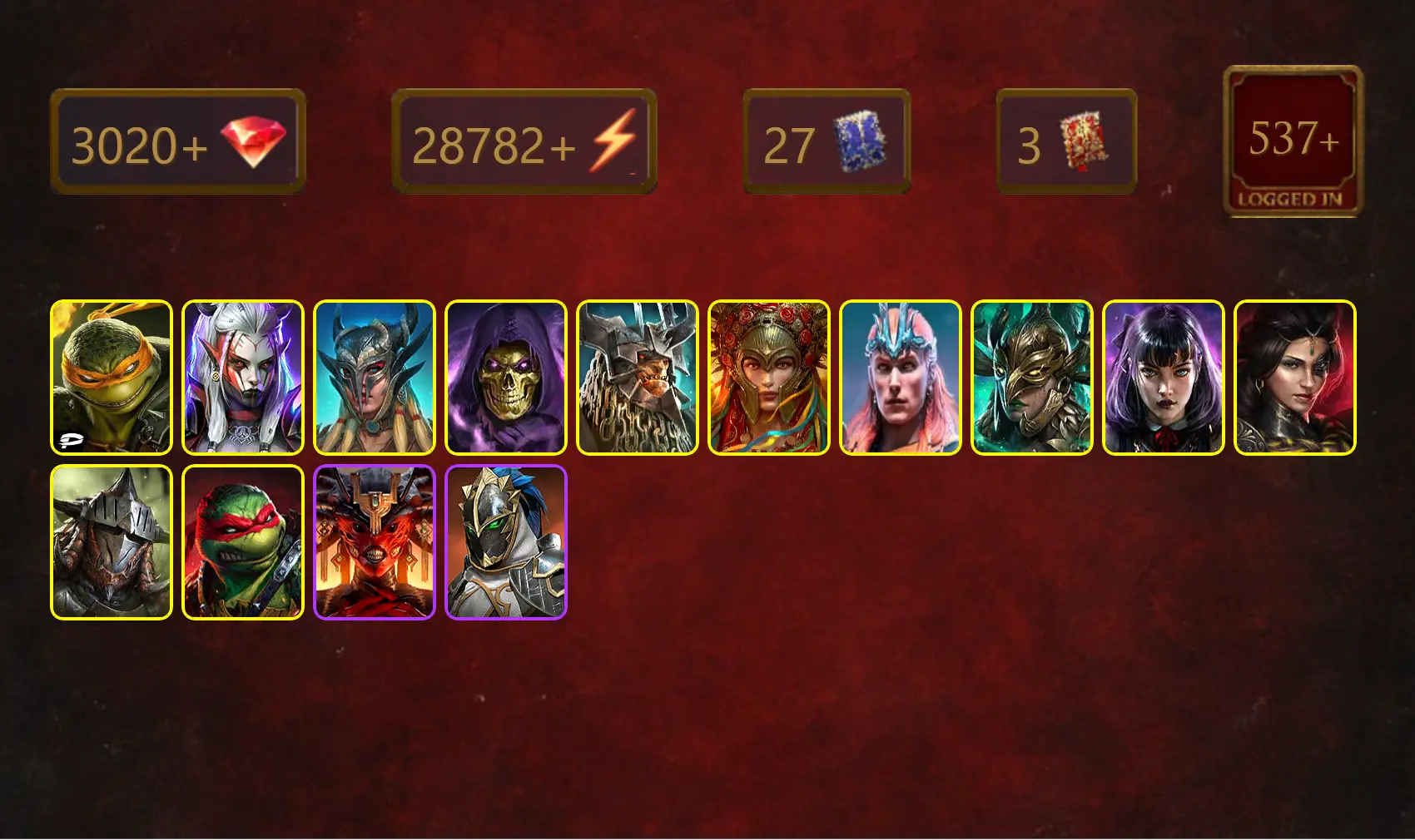 [STARTER]Marichka+Raphael+Michelangelo+Visix+Scyl+Skeletor+Iron Brago+Loki+Leminisi the Gold-Wing+Alice+Adelyn+Rathalos+23Epics