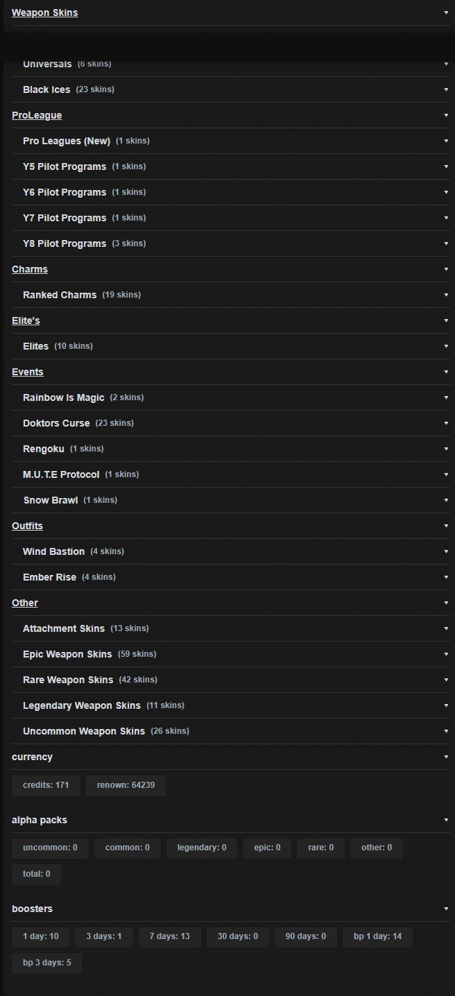 / | PC|PSN | 1x Platinum & 2x Gold | Lvl 134 | Ranked Ready | 69 Operators | 23x Black Ice | 6 Universal Skins | 7 Pro League Sets | 10 Elite | 64239Renown |